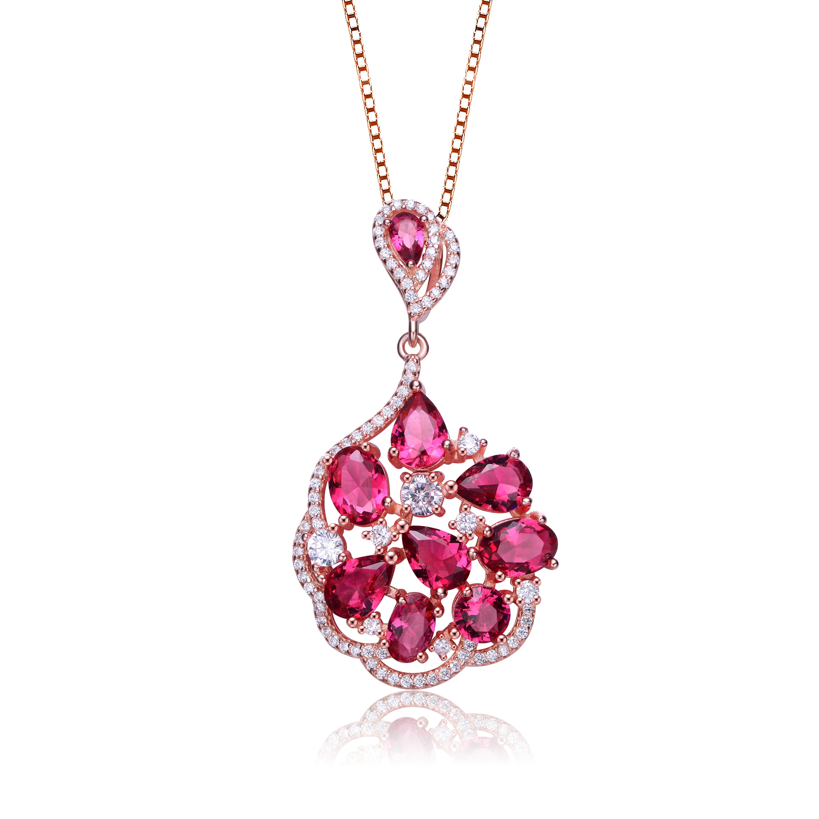 Features multicolored cubic zirconia gemstones beautifully pronged in cluster. This pendant necklace is made from .925 Sterling silver plated with rose gold comes with cable chain and secured by spring ring.