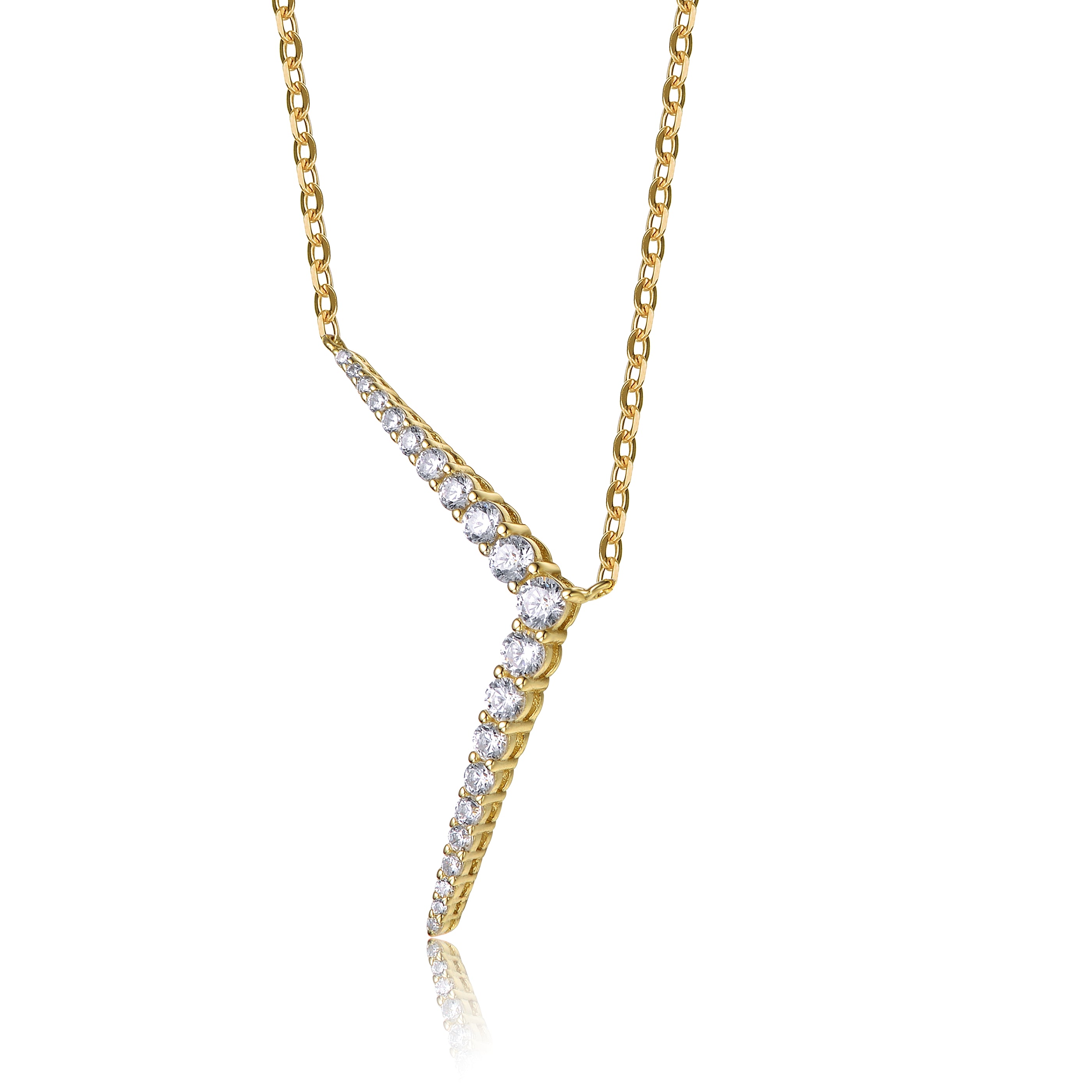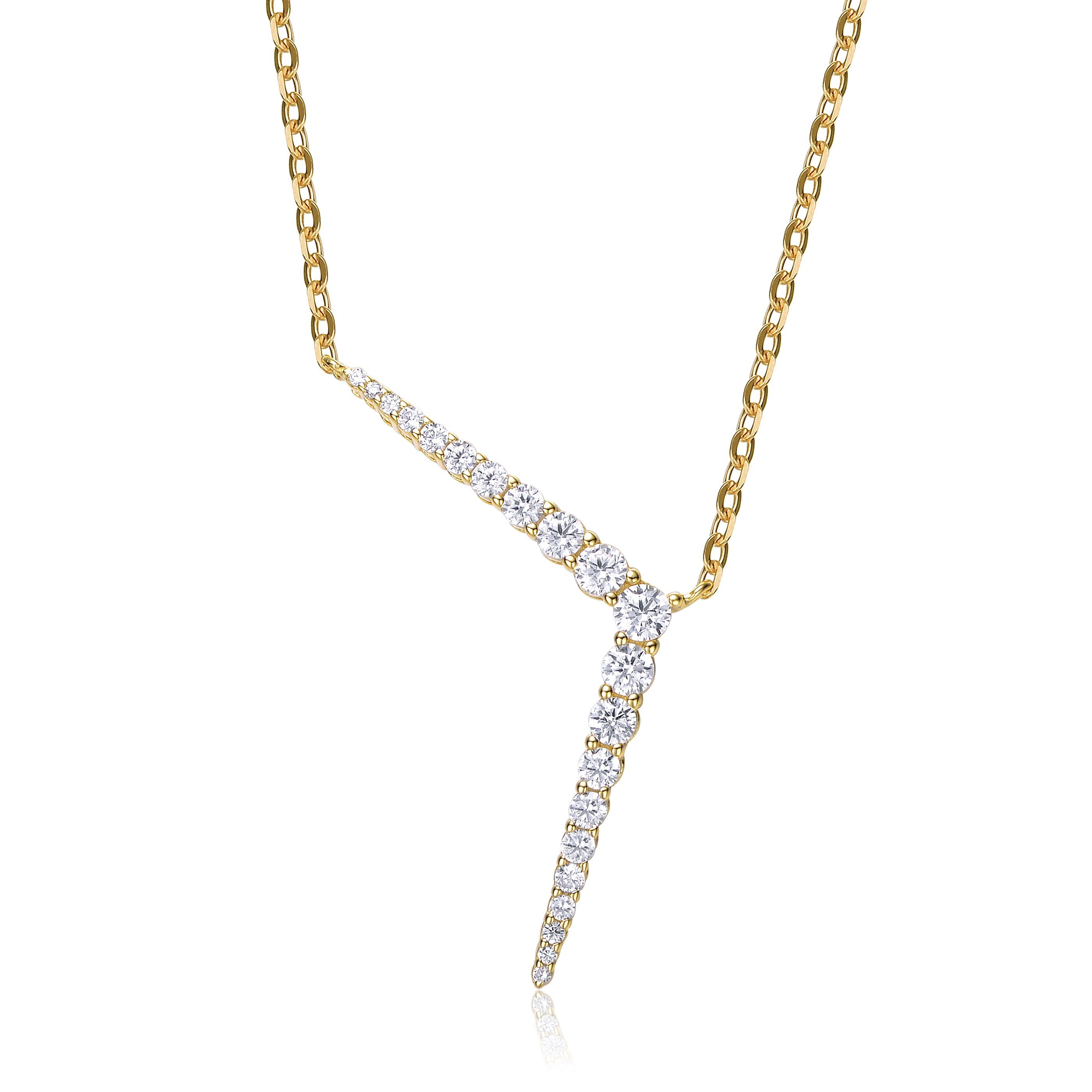 14k Yellow Gold Plated with Cubic Zirconia Solar Chevron Necklace in Sterling Silver