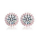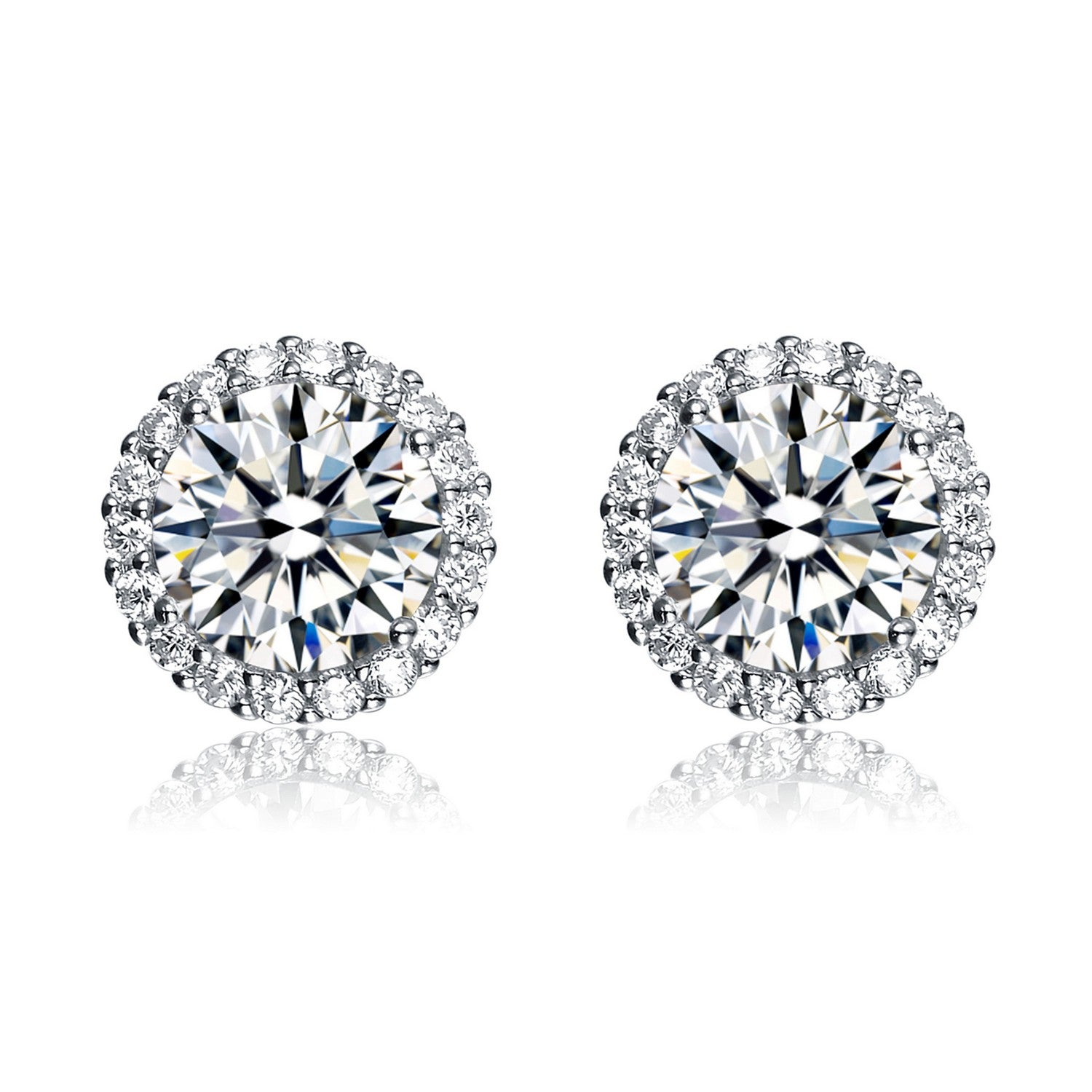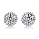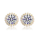 Elegant .925 Sterling silver cubic zirconia button stud earrings. These earrings feature large clear round cubic zirconia stones accented by small clear round cubic zirconia stones .crafted of .925 Sterling silver in rhodium plating and secure with butterfly clasp. Also avialable in Gold and Rose gold platting.