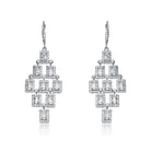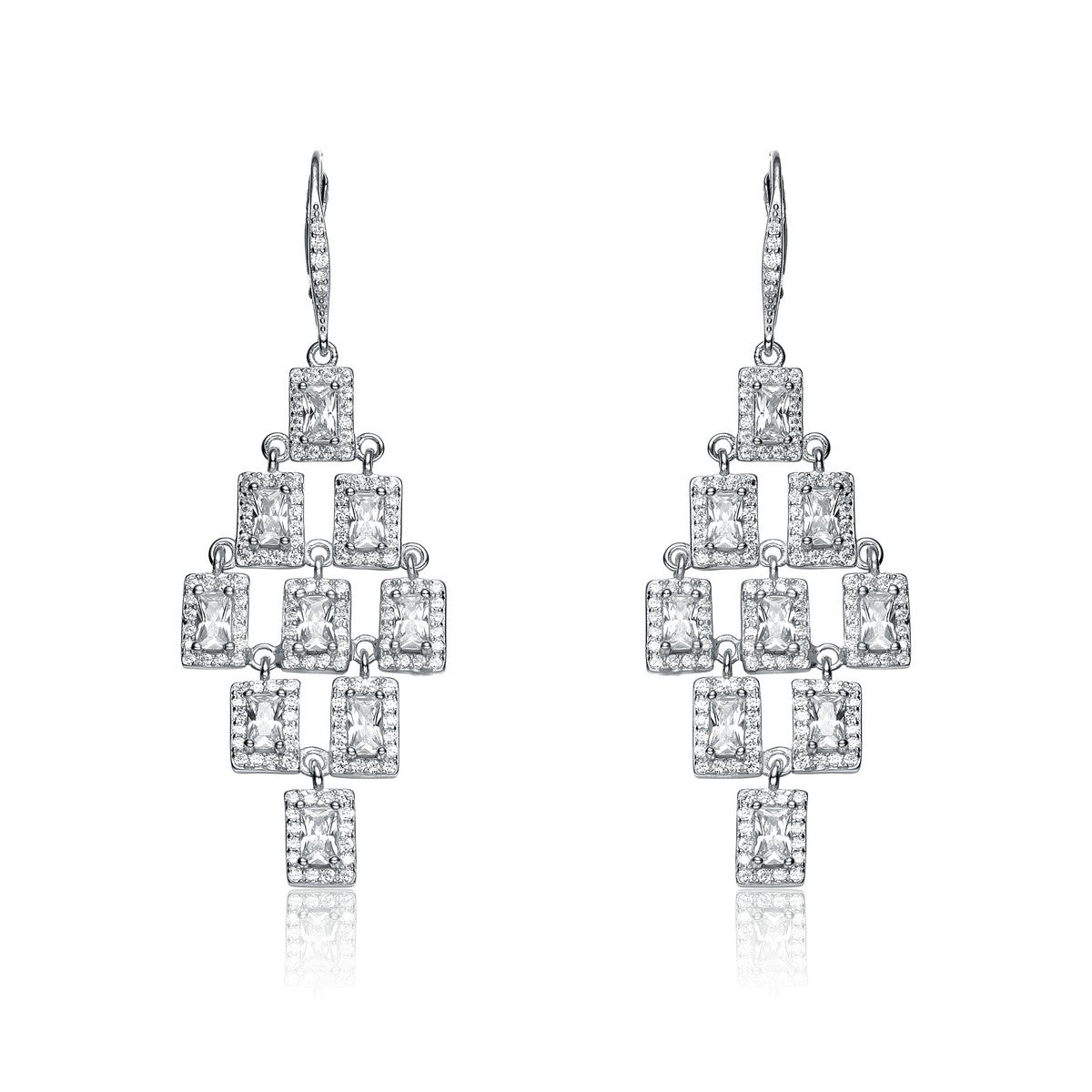 Elegant .925 Sterling silver cubic zirconia chandelier earrings. These earrings feature clear cubic zirconia stones set in prong setting surrounded with smaller clear cubic zirconia stones. Crafted of .925 Sterling silver with rhodium plating and secure with butterfly closure.