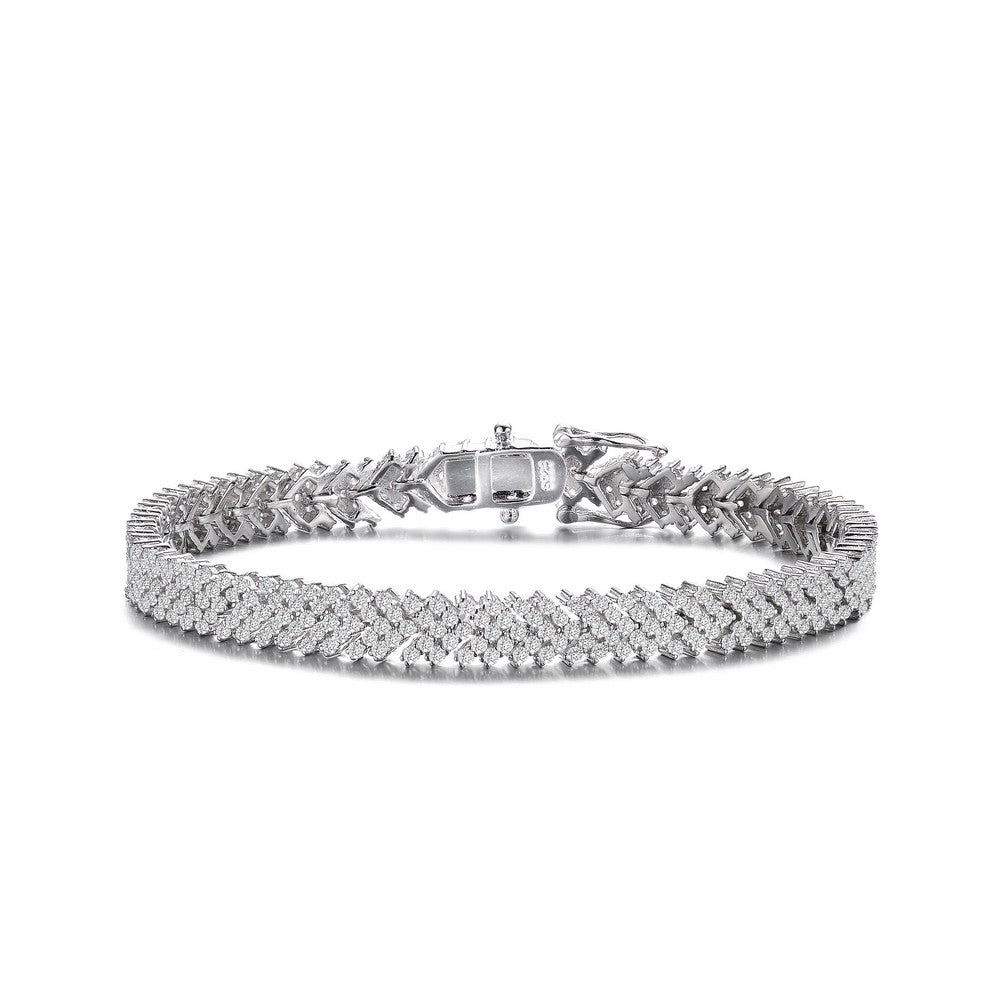This stylish bracelet features a pave of clear round cubic zirconia in diagonal pattern to form several arrow head inspired design. Crafted of .925 Sterling silver with rhodium plated this stylish bracelet shines with a highly polished finish and secures with a box clasp.
