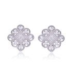 Stylish .925 Sterling silver cubic zirconia floral stud earrings. Each of these dainty square lace earrings is decorated with small clear round cubic zirconia stones. Crafted of .925 Sterling silver with rhodium plating and secure with butterfly closure.