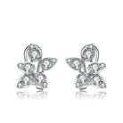 Classy .925 Sterling silver cubic zirconia leaf stud earrings. These earrings feature clusters of small and large clear round cubic zirconia stones that make the leaf shaped design. Crafted of .925 Sterling silver in rhodium plating and secure with omega closure.
