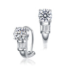 These fine petite hoop earrings feature a clear round cubic zirconia stones set in prong setting in the top of the metal frame accented by clear baguette cubic zirconia stones. Crafted of .925 Sterling silver with rhodium plating and secure with omega clasp.