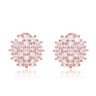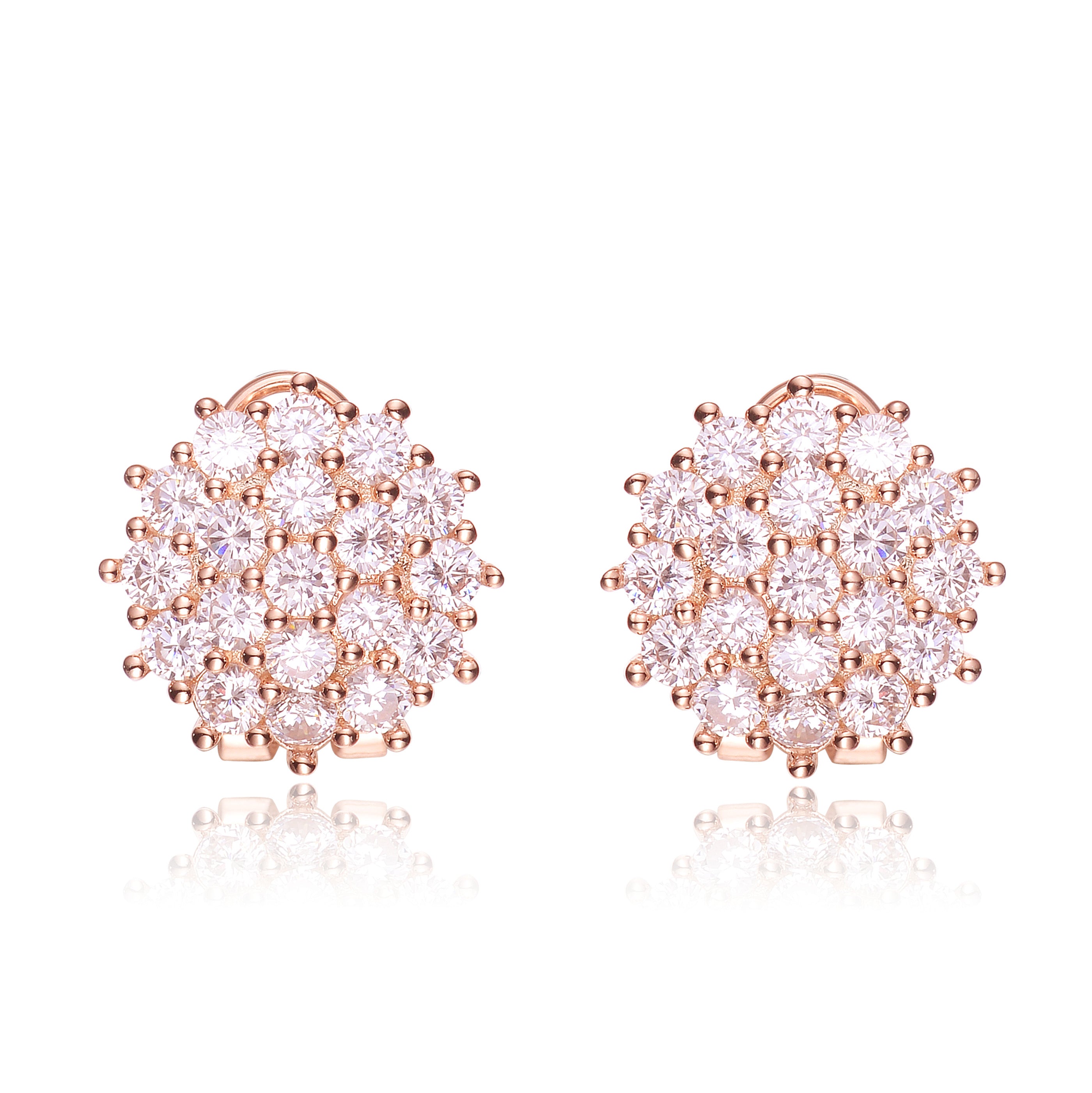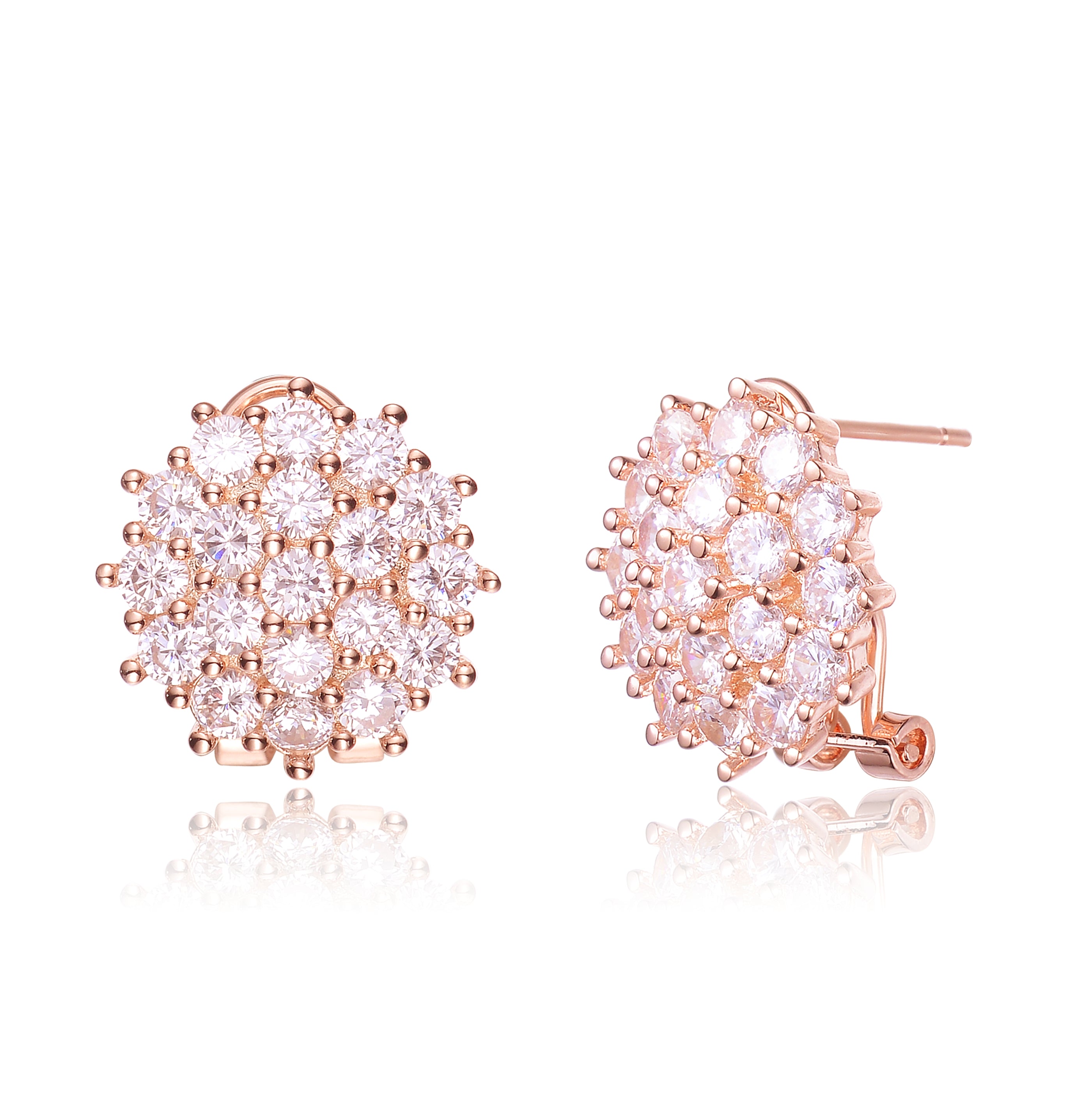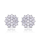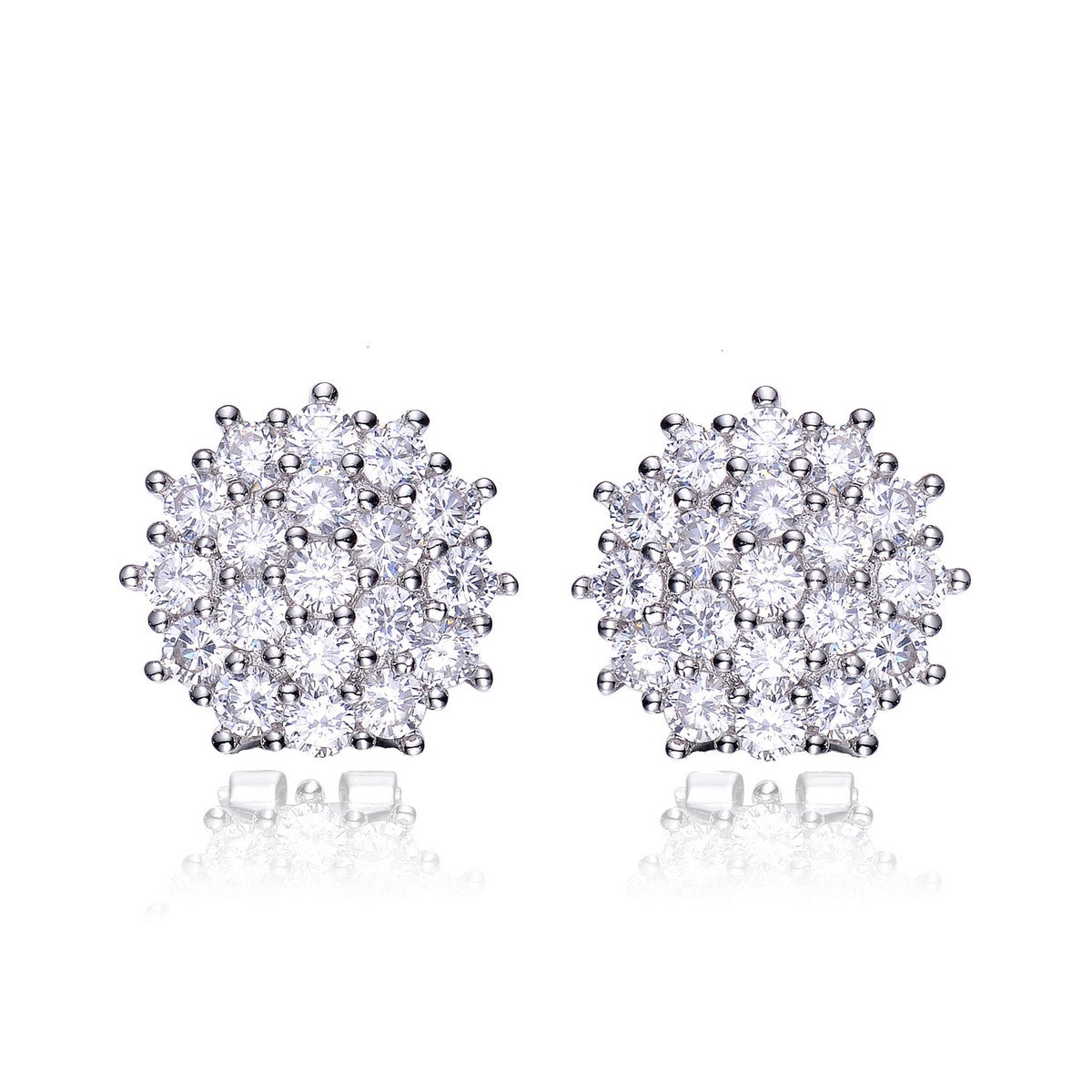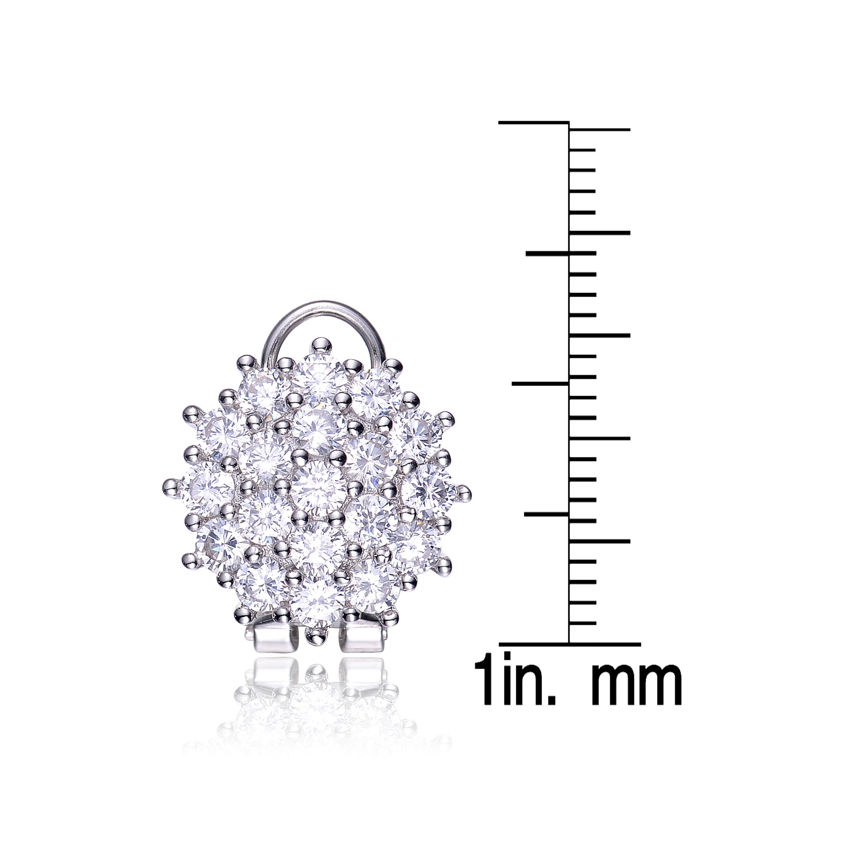 Elegant .925 Sterling silver cubic zirconia earrings. These stunning cluster earrings feature dazzling round cut clear cubic zirconia stones. Crafted of .925 Sterling silver with rhodium plating and secure with omega clasp.