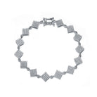 Classy .925 Sterling silver pave set bracelet. This bracelet features square shapes connected between that are decorated with clear round cubic zirconia stones set in prong setting. Crafted of .925 Sterling silver in rhodium plating and it secures with a box clasp.
