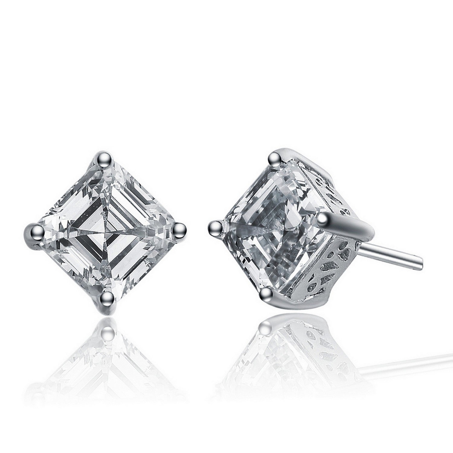 Elevate your style with these exquisite Square Stud Earrings. Crafted in sterling silver, available in stunning plating. Choose from Rhodium plating with clear,Rose gold platting with Ruby red or Gold platting with Emerald green cubic zirconia. The butterfly clasp ensures secure and comfortable wear. Indulge in affordable luxury!