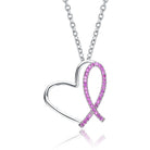 Lovely .925 Sterling silver rhodium plated with pink cubic zirconia heart loop necklace. This unique design features heart-loop shape. The heart is metal and the loop is accented by small pink round cubic zirconia stones. The necklace is .925 Sterling silver with rhodium plating and has a spring ring closure. This necklace makes a great gift as well.