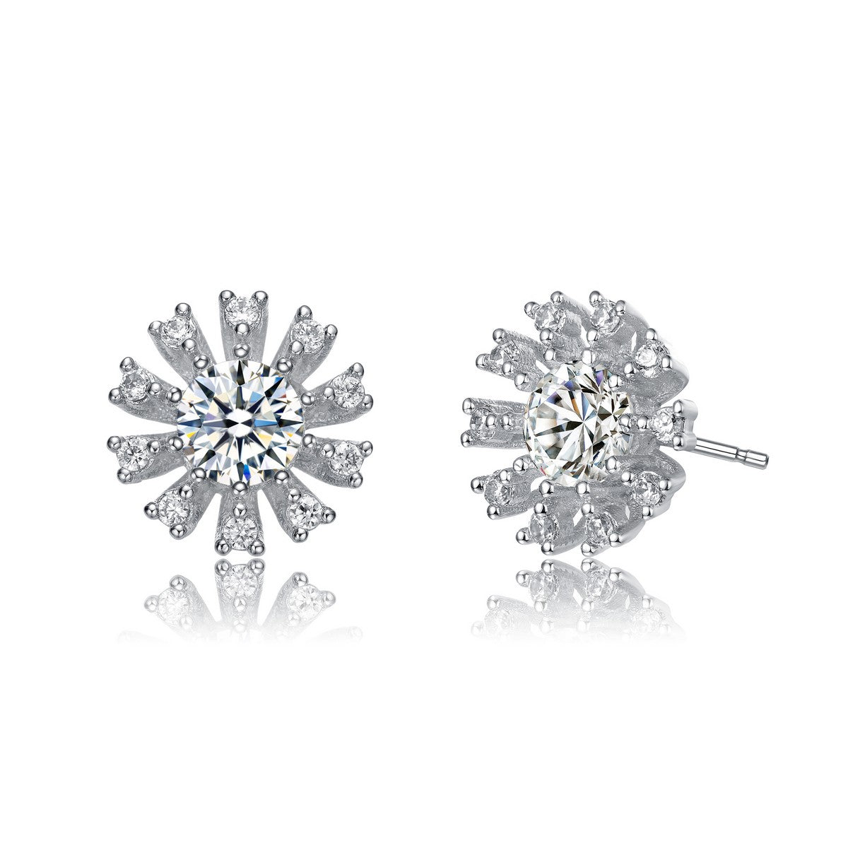 Show your charming side when you wear these elegant .925 Sterling silver earrings. The frisky wreath design is formed using clear round cubic zirconia as center surrounded with metal petals on each ends an clear round cubic zirconia. This pair is crafted in rhodium plating. it secures with a butterfly closure.
