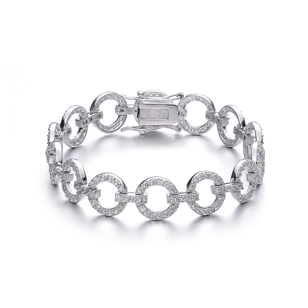 Halos of clear cubic zirconia stones link together in this fancy sterling silver bracelet. Wear it to nighttime or daytime events to add a new dimension.