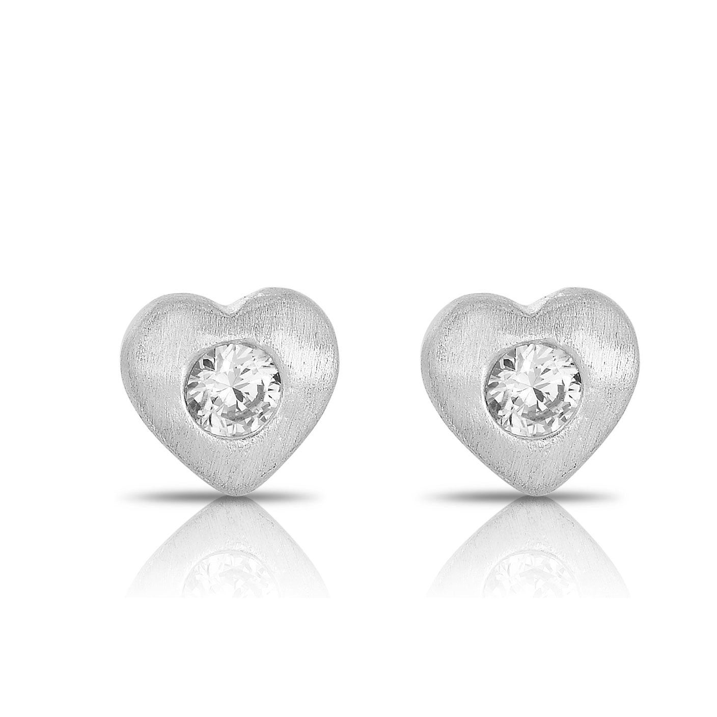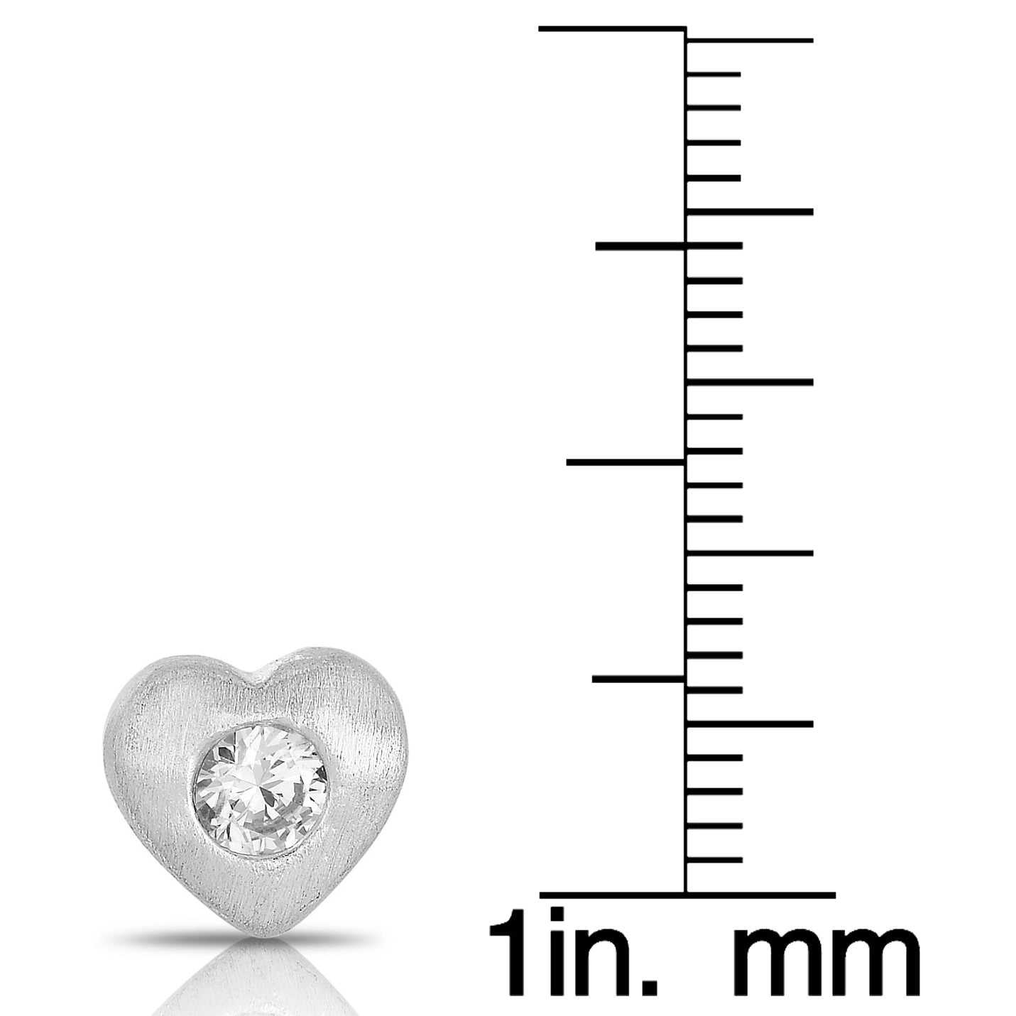 C.Z. Sterling Silver Rhodium Plated Brushed Bezel Set Heart Shape Earrings