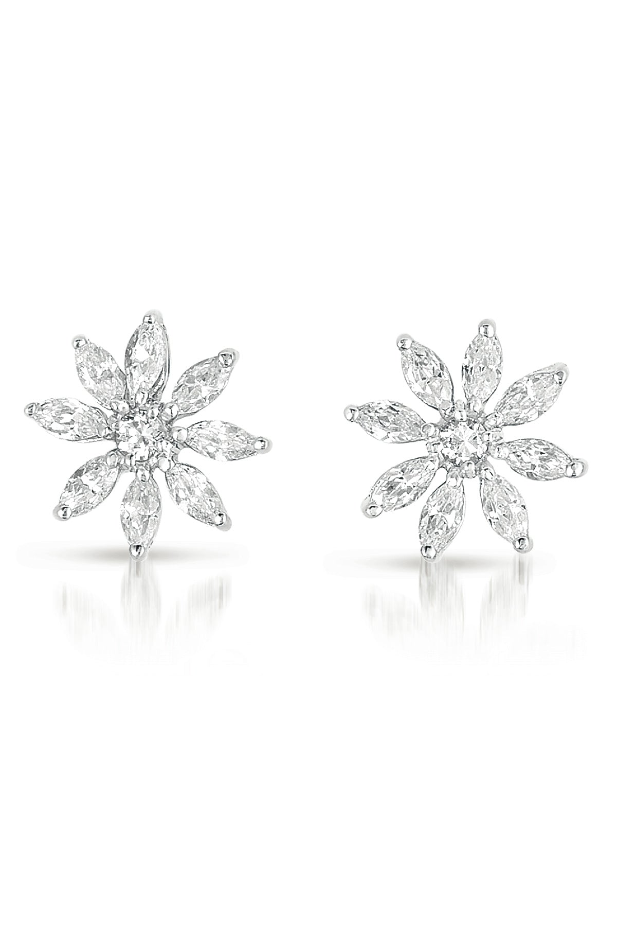 C.Z Sterling Silver Rhodium Plated Flower Earrings