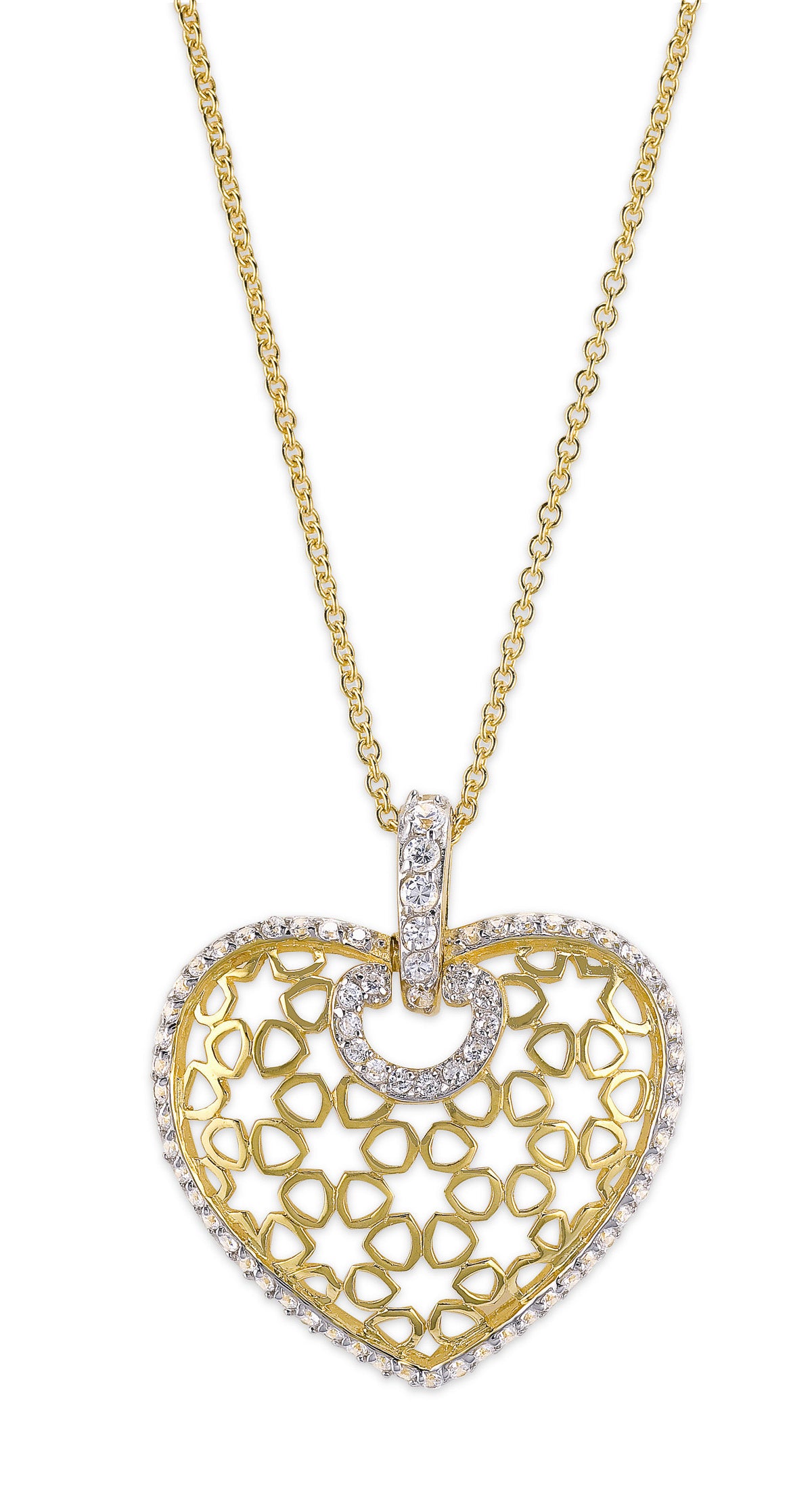 C.Z. Sterling Silver Two Tone Heart Shape Lace Pendant