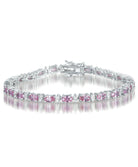Add a touch of elegance to your wrist with this classy tennis bracelet. Crafted in sterling silver, it showcases a beautiful array of colored stones, exuding a timeless charm. Elevate your style with this elegant and refined accessory.