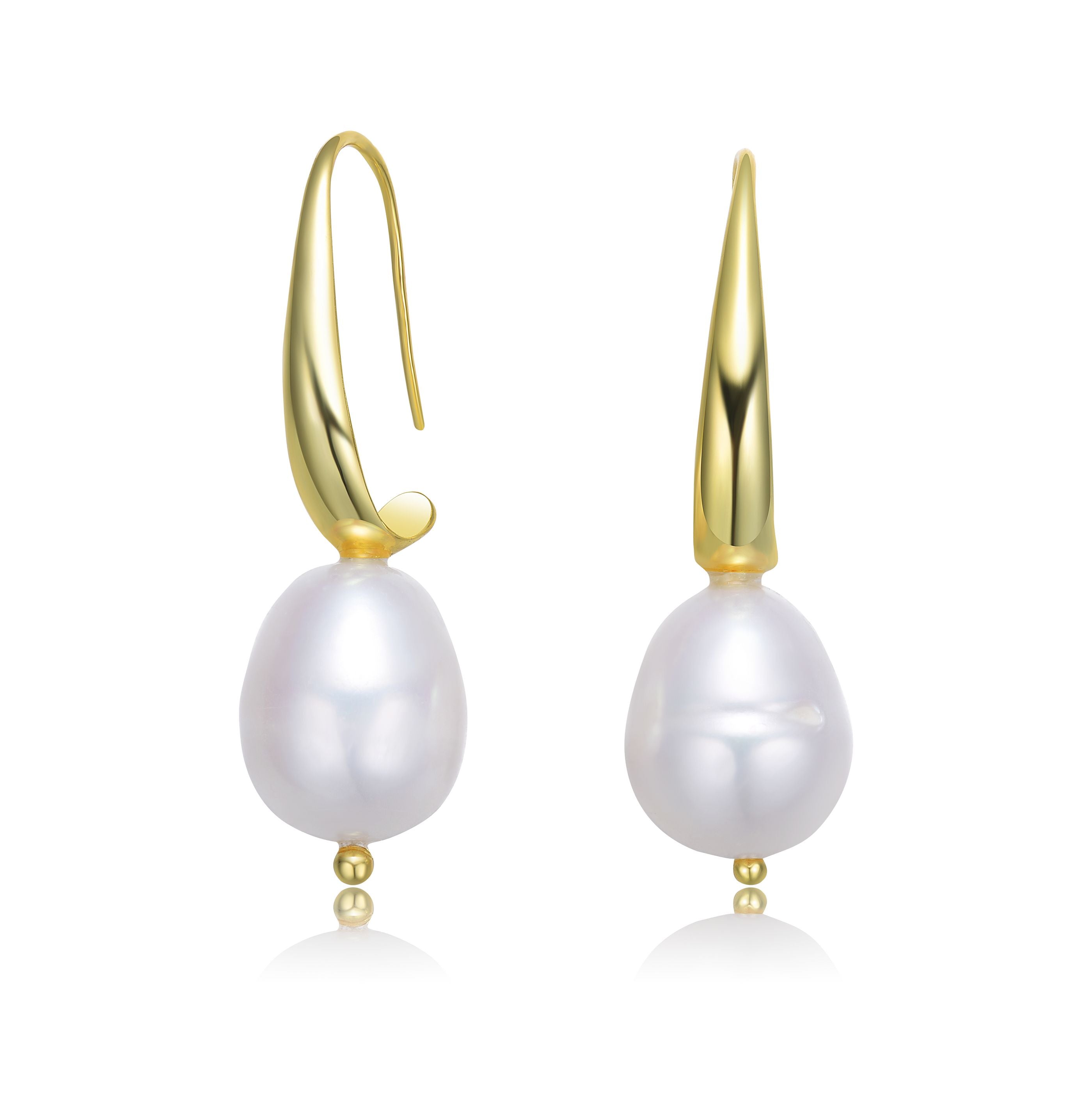 Classy Sterling Silver with Gold Plating and Freshwater Pearl Dangling Earrings. These earrings feature gold plated metals with Freshwater pearls hanging on each piece. Crafted in .925 Sterling Silver, the piece is secured with a hook clasp. The jewelry is perfect for a formal event. This also makes a great present for a special ocassion.