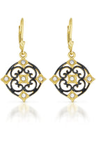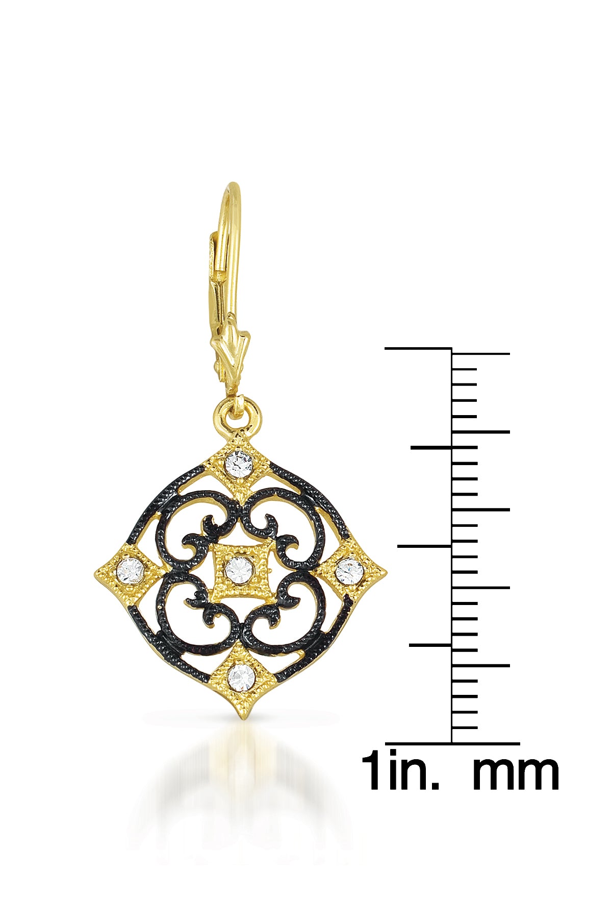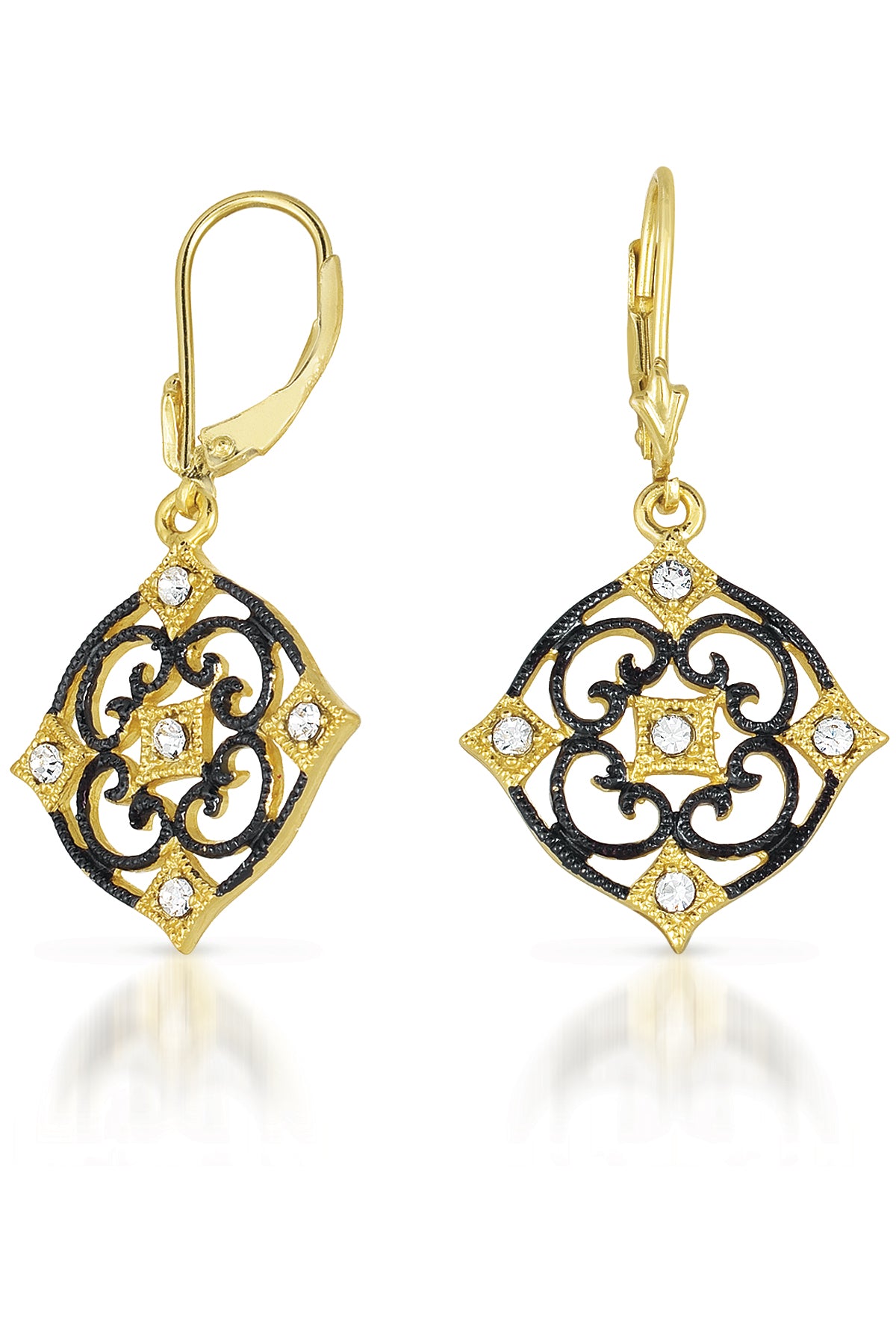 Cubic Zirconia Sterling Silver Black And Gold Deco Earrings