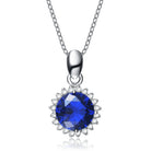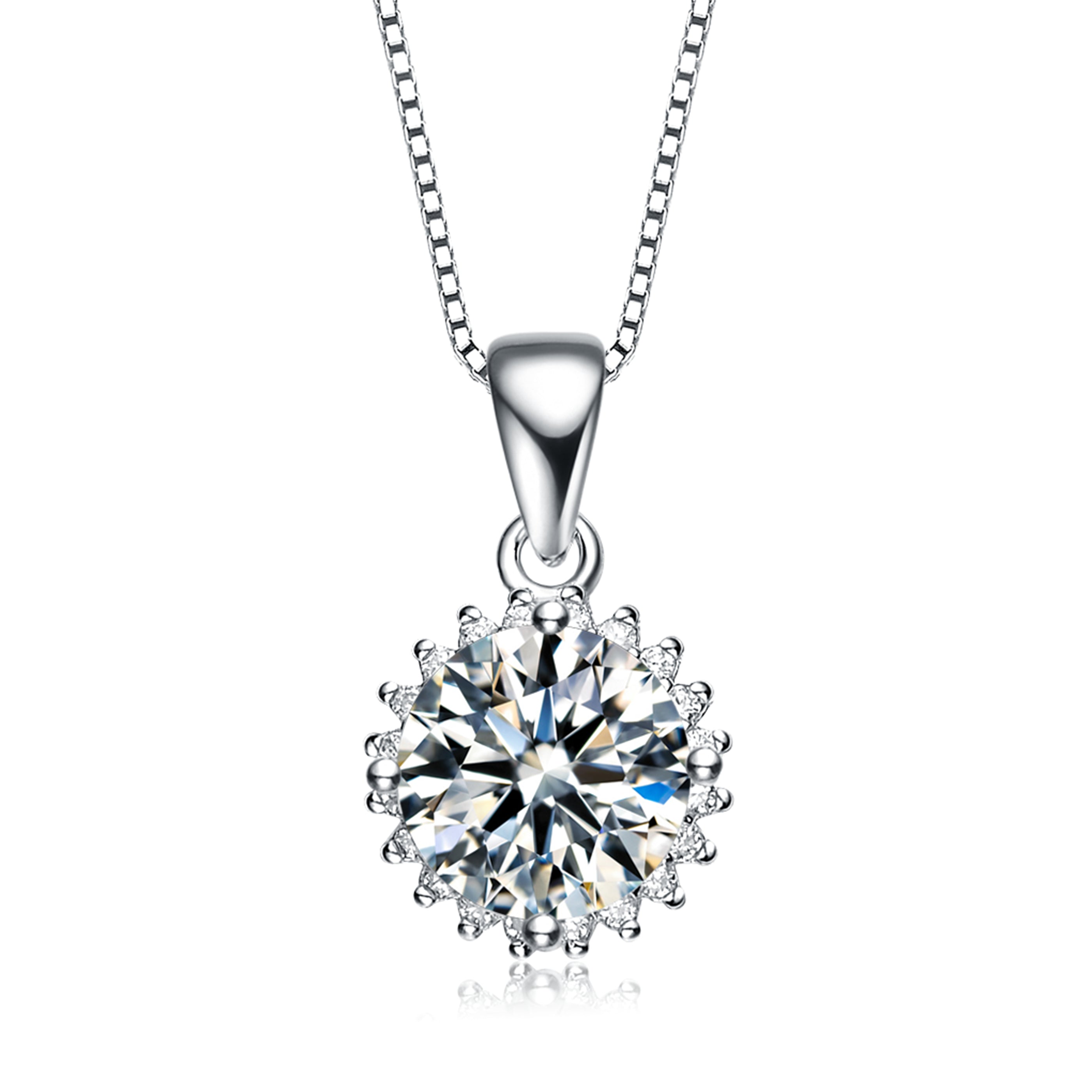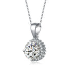 This dainty stud pendant features a round-cut cubic zirconia stone outlined with white smaller round ones. Crafted of 0.925 sterling silver, the necklace secures with a spring ring clasp.