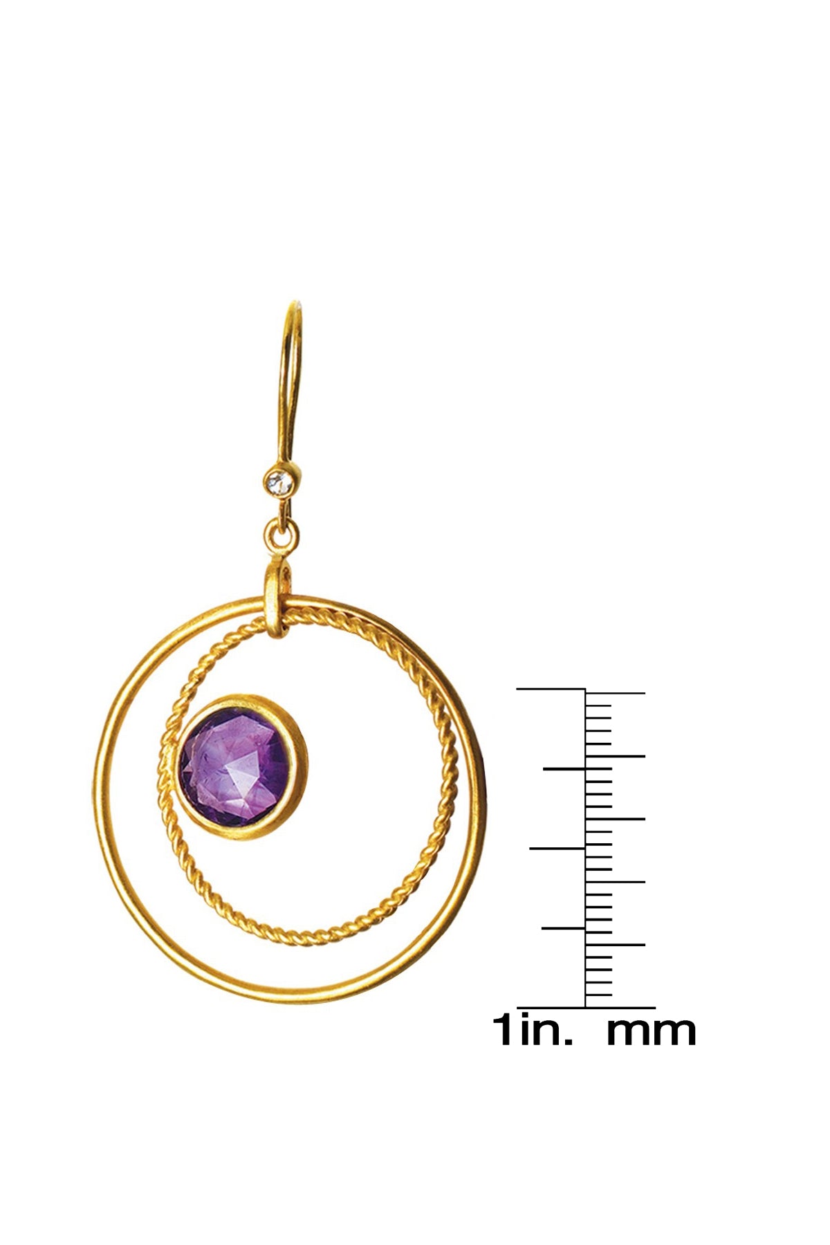 These stylish earrings showcase two outlined goldplated circles enhanced with a peridot quartz round stone. Crafted of .925 sterling silver with goldplating, the earrings secure with euro clasps.