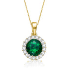 You'll look stunning at your next outing wearing one of these high-polish necklaces, designed to provide an understated air of elegance when added to any outfit. This versatile collection features sleek sterling silver designs that are special enough to pair with an evening gown yet simple enough to dress up any ensemble. Choose from our classic Round-Cut Solitaire necklace, which highlights a lovely round-cut cubic zirconia or colorful simulated emerald stone, or our stylish Halo Necklace, which features a clear round cubic zirconia surrounded by a halo of smaller round cubic zirconias, set in Sterling Silver with a beautiful Rose Gold plated finish. Both styles are secured with a reliable spring ring clasp, offering a welcome and versatile addition to any jewelry box. Available in 14K Yellw Gold, 18K Rose Gold, and Green 14K Gold or 18K ROse Gold