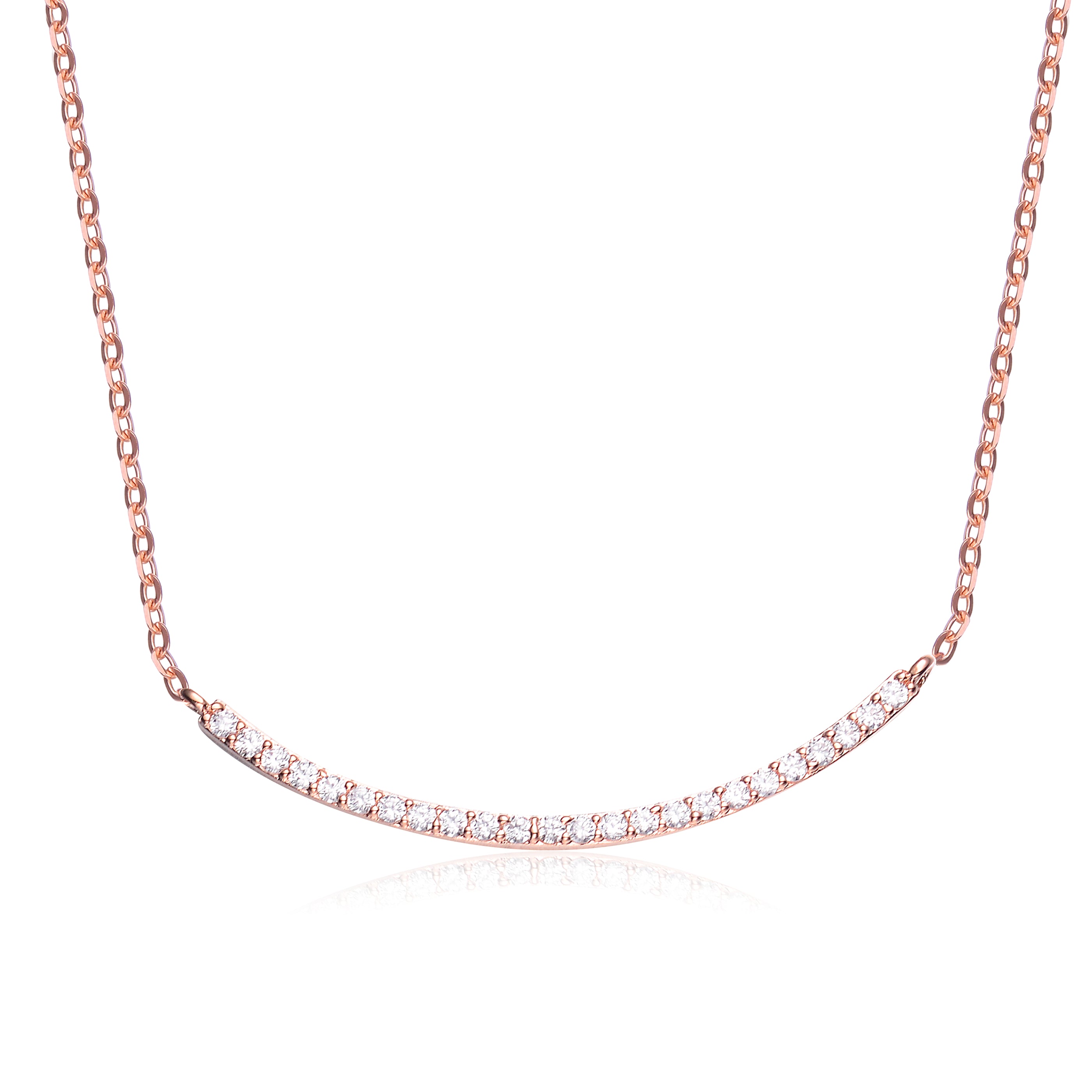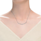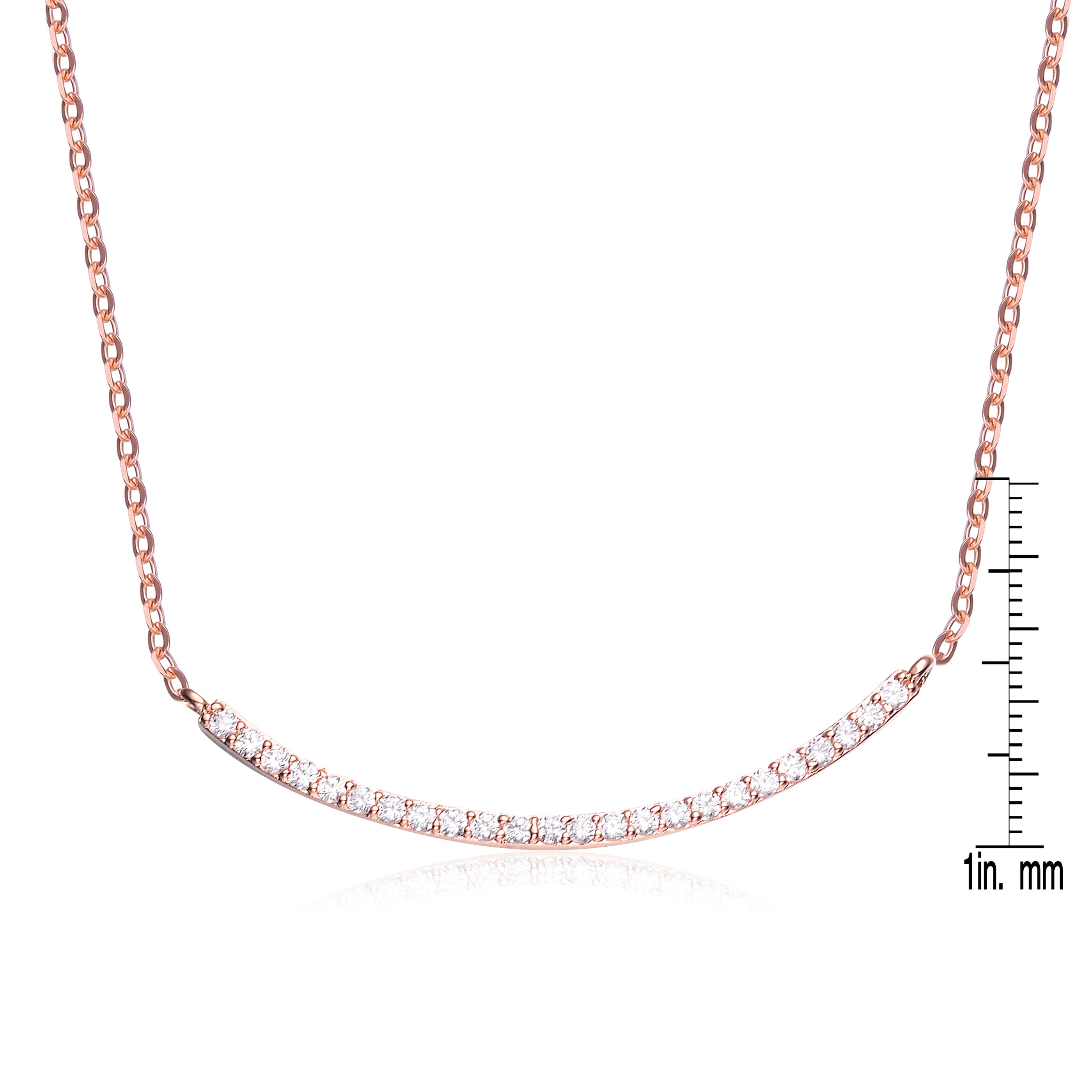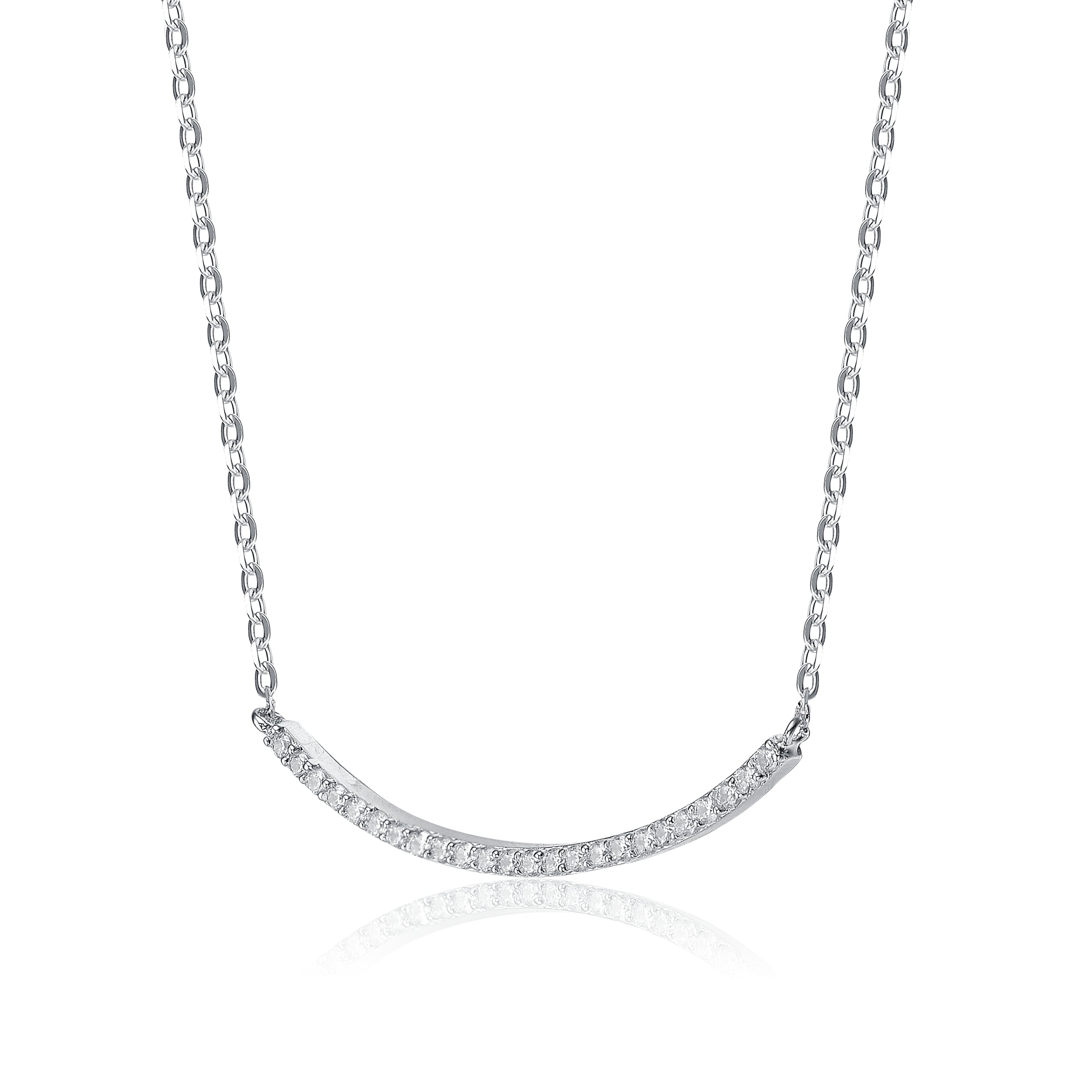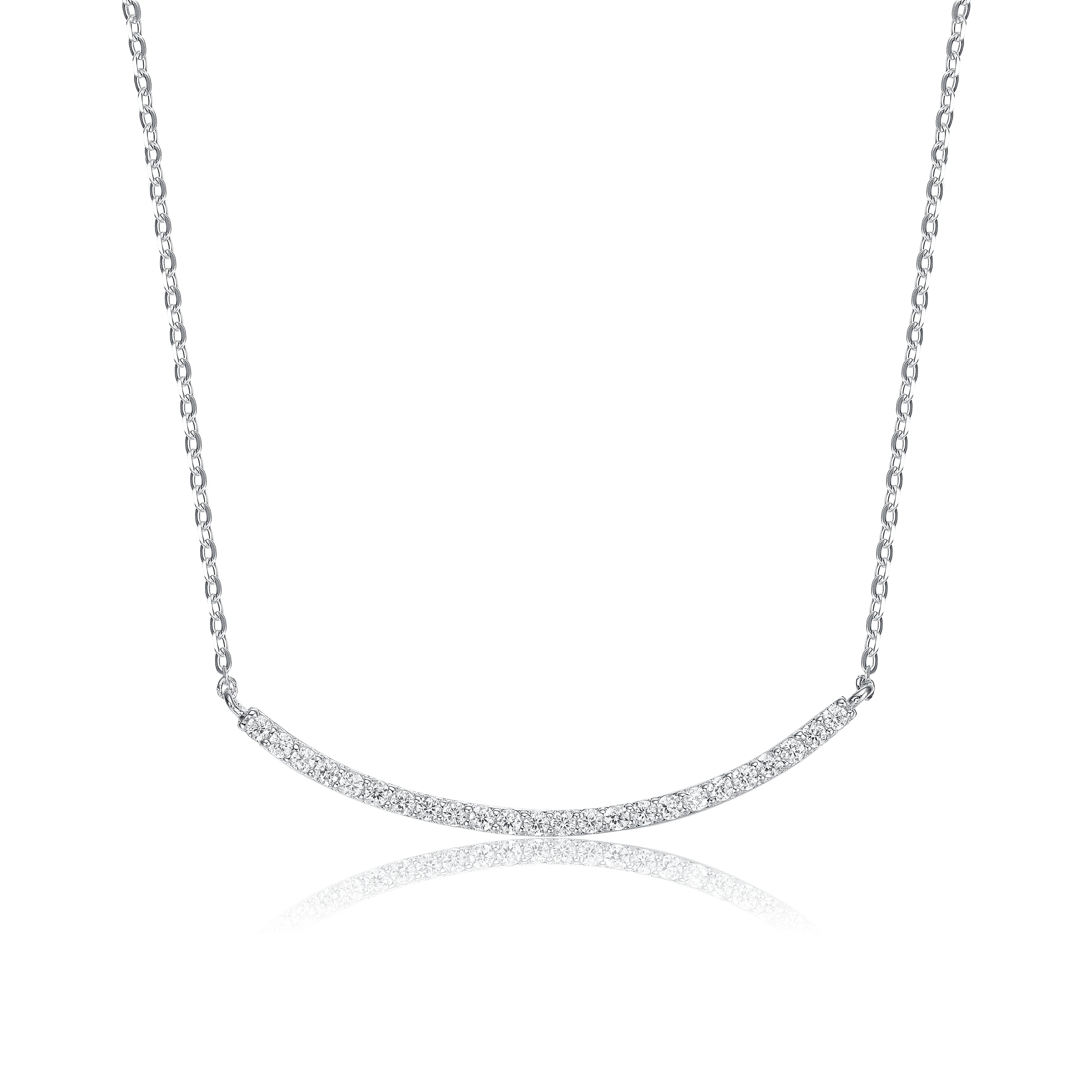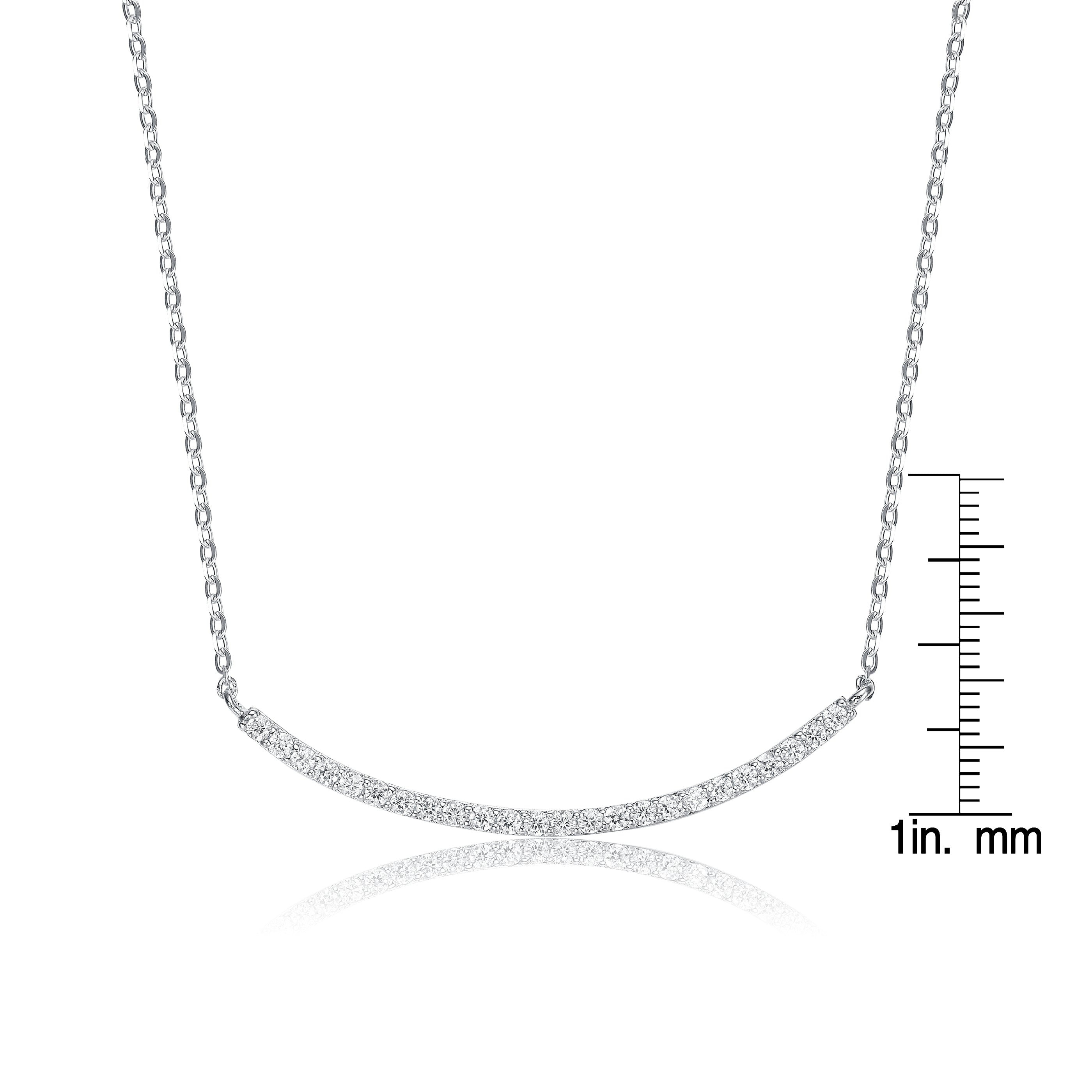 Cubic Zirconia Sterling Silver Rhodium Plated Curved Necklace
