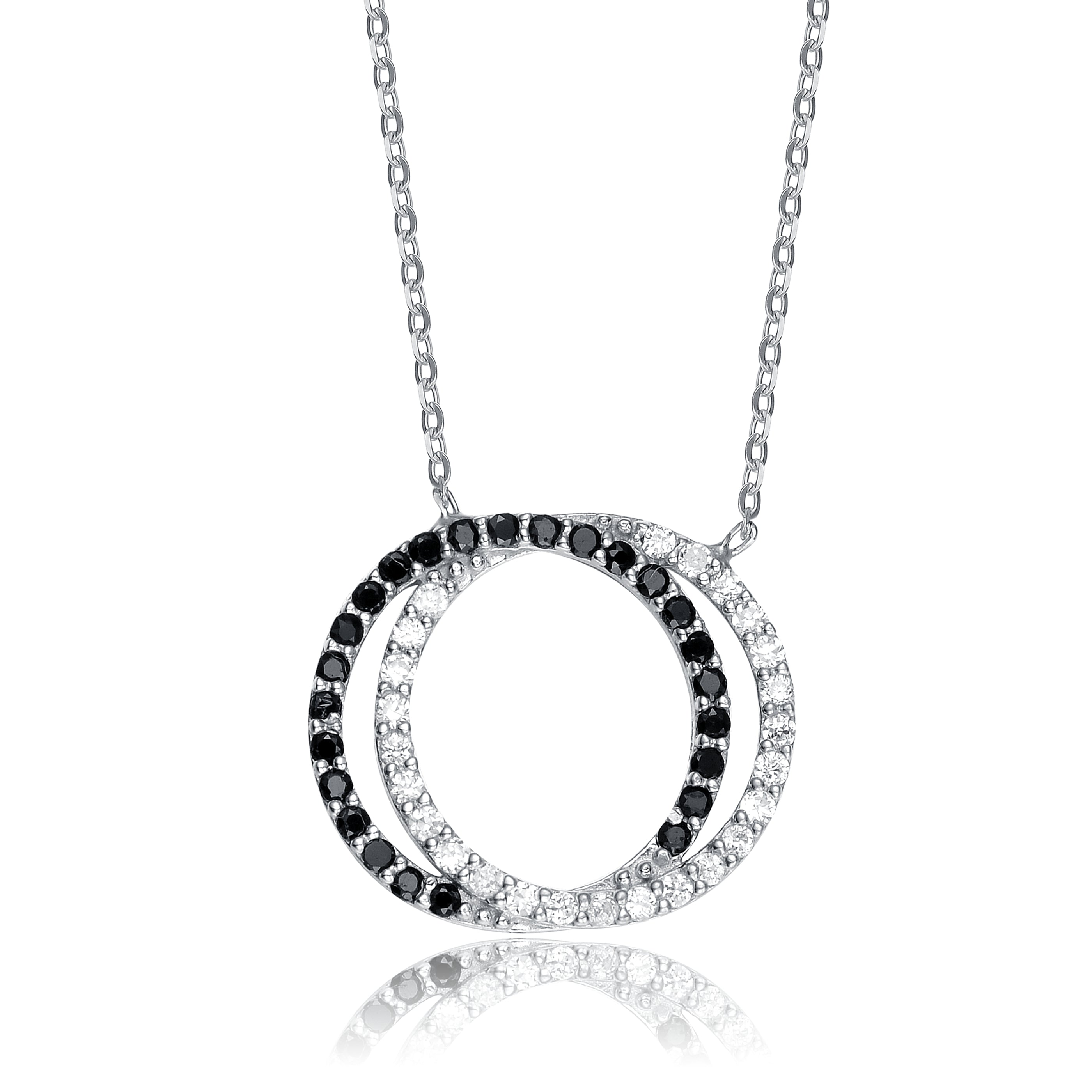 Cubic Zirconia Sterling Silver Rhodium Plated Double Outlined Circle Neckalce
