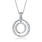 Cubic Zirconia Sterling Silver Rhodium Plated Drop Circle Pendant