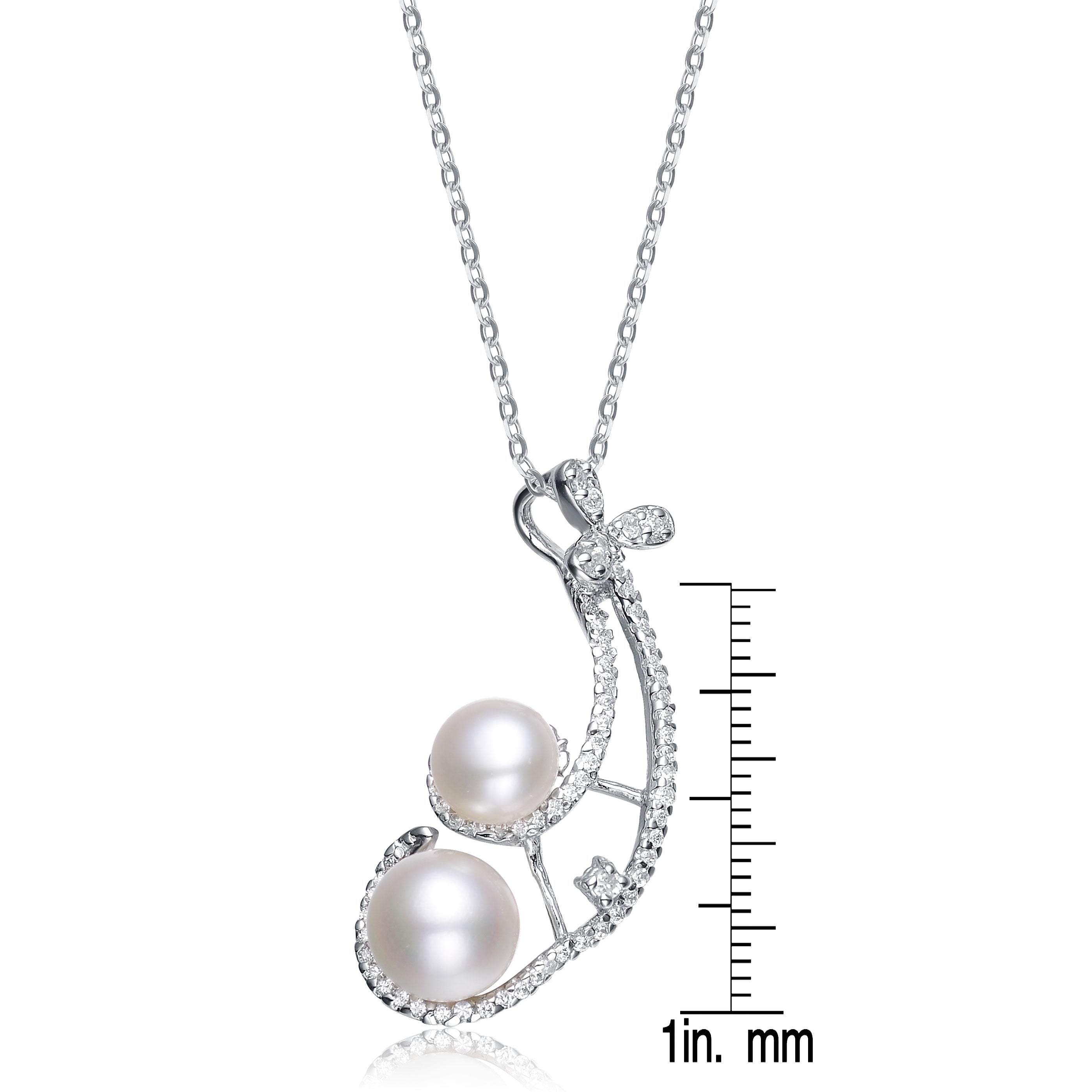 Cubic Zirconia Sterling Silver Rhodium Plated Genuine Freshwater Pearl Pendant
