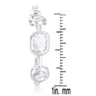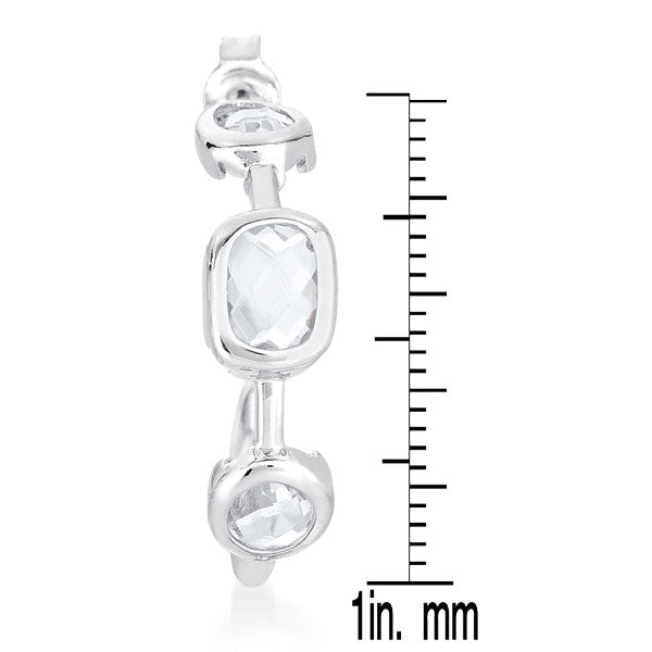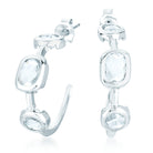 These sterling silver rhodium plated cubic zicronia hoop earrings secure with a butterfly clasp. Whether worn for a special occasion or as a statement piece, it’s sure to turn heads and capture attention.