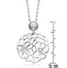 Cubic Zirconia Sterling Silver Rhodium Plated Matte Brushed Filigree Pendant