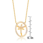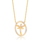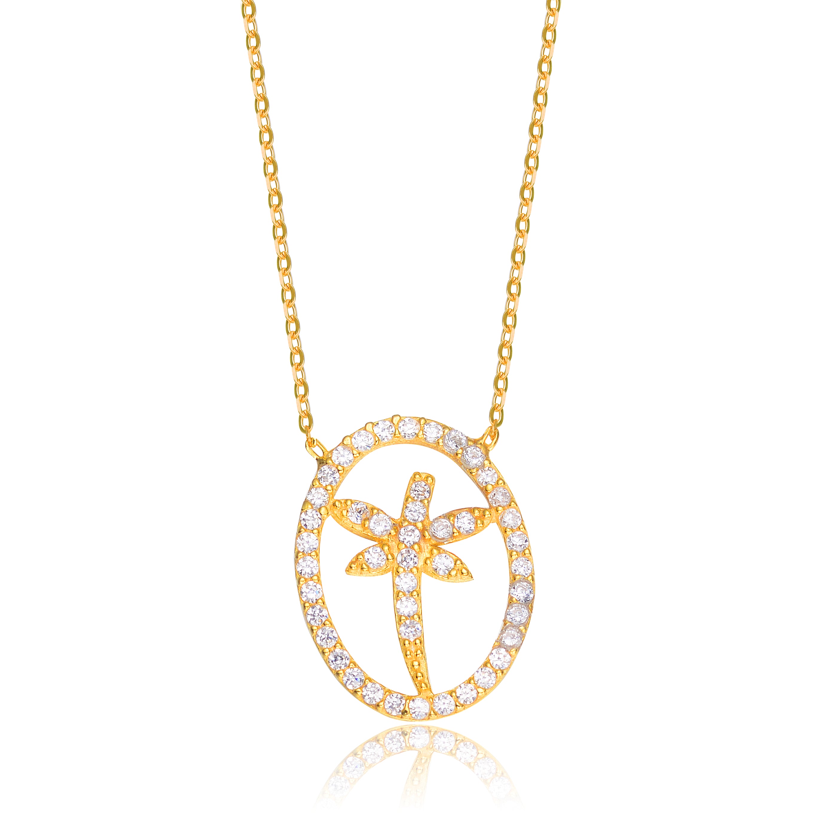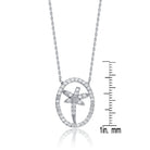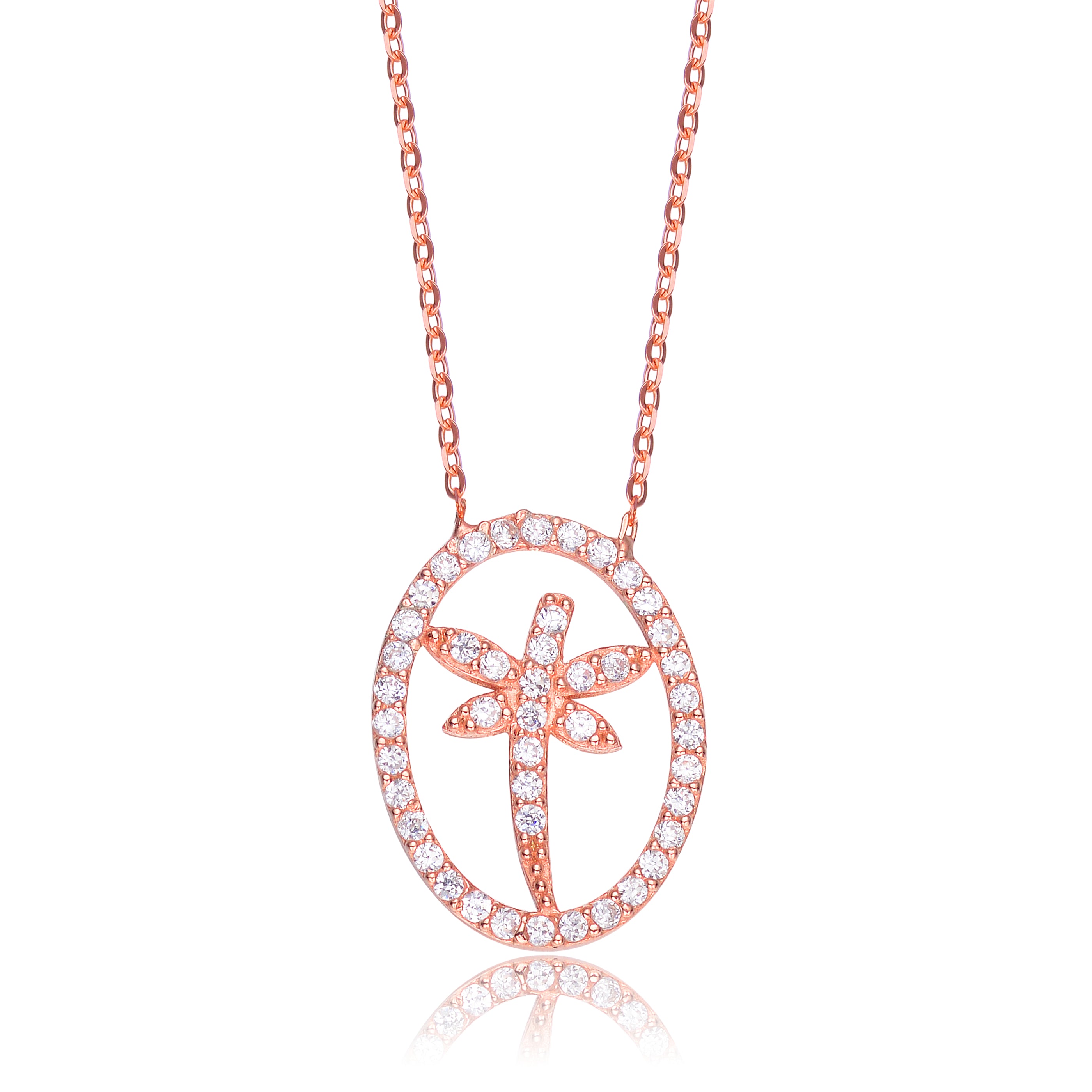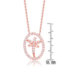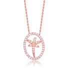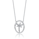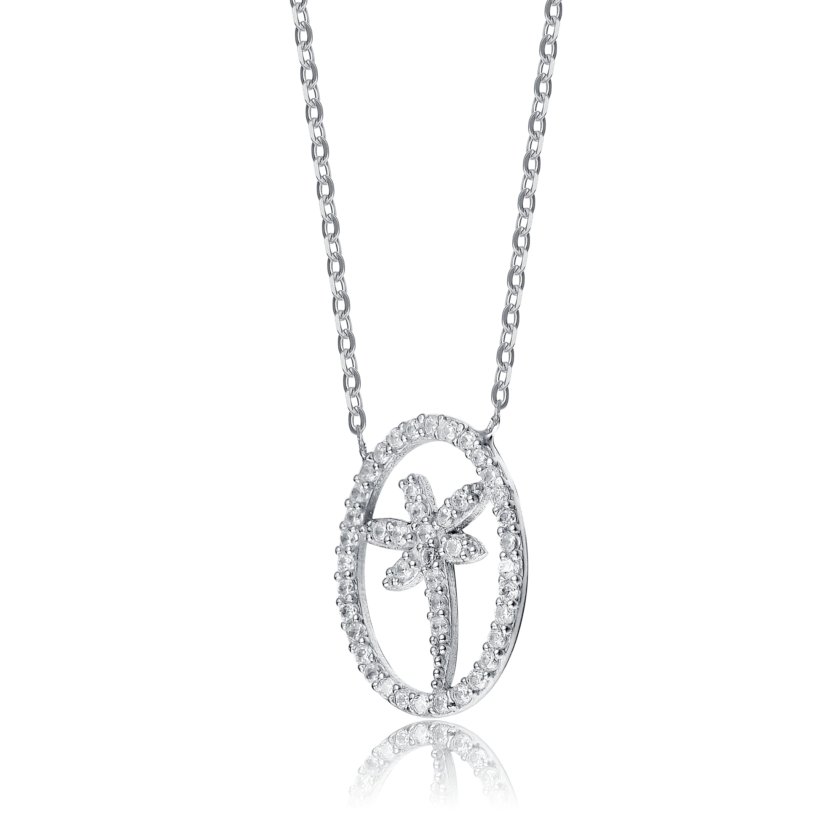 This dainty oval shape flower necklace is enhaced with white round-cut cubic zirconia stones, in pave settings. Crafted of .925 stelring silver, the necklace secures with a spring ring clasp.