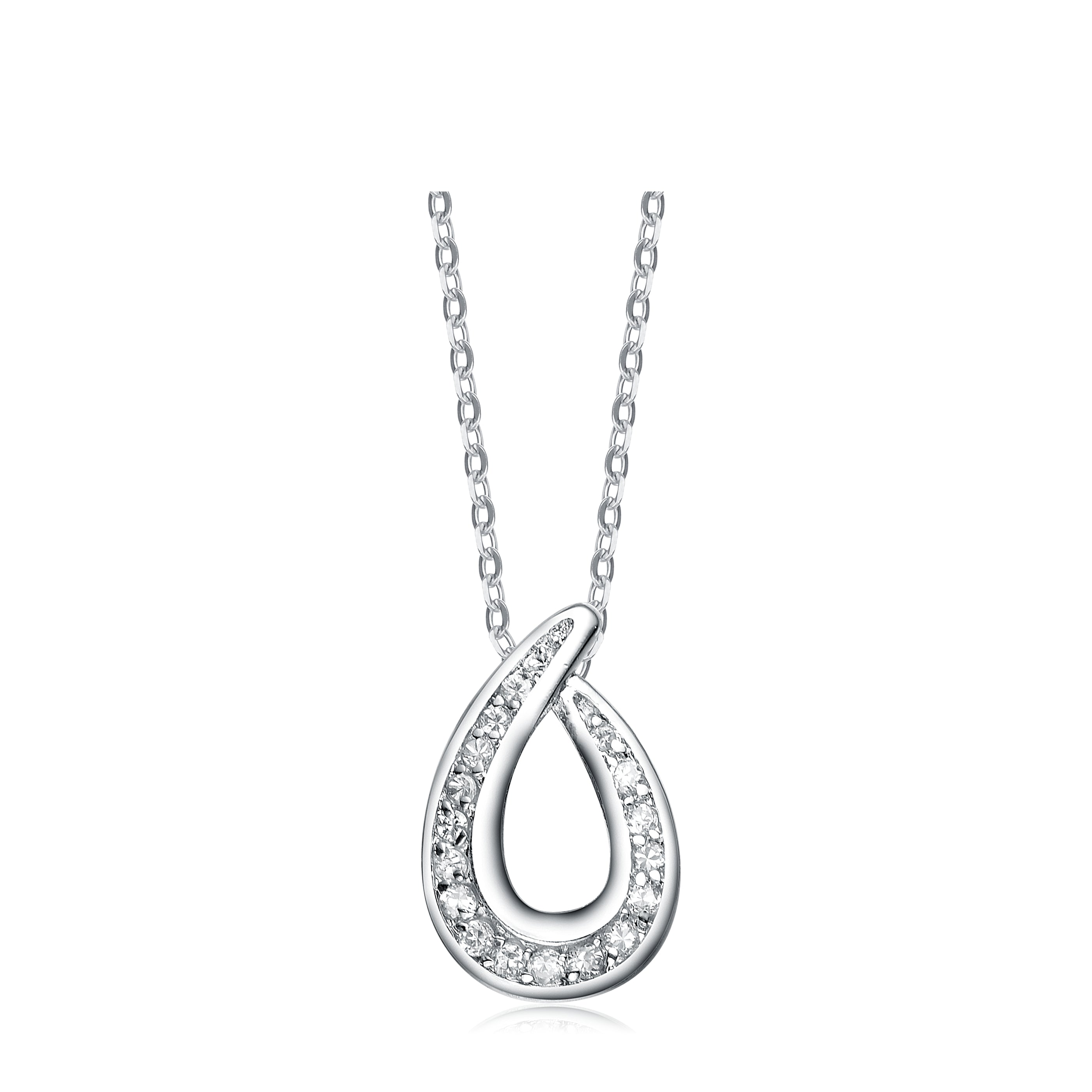 Add a simple touch of elegance to any outfit in this teardrop shaped pendant . This pendant glistens with CZ's and is crafted in sterling silver. It comes with an 18 inch chain and has a spring ring closure.
