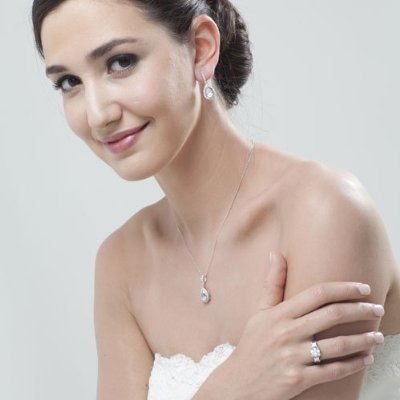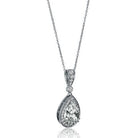 This shimmering peardrop cz neckalce shines brilliantly in any light. it's always a pleasure to wear. the white pear shaped and brilliant cut cubic zirconias that swing freely on its sterling silver chain dance freely with a light of elegance as they rest easily around the neck. with the rhodium finished sterling silver tying it all together, this sterling silver round cz's with dangling teardrop is a perfect gift for bridesmaids! shop with confidence knowing that the quality of our sterling silver cubic zirconia cz necklaces & pendants is backed by our 30 day jewelry return policy to assure complete satisfaction (Chain is not included sold separately)