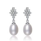Cubic Zirconia Sterling Silver Rhodium Plated Pearl Drop Earrings