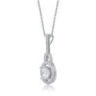 Cubic Zirconia Sterling Silver Rhodium Plated Round Drop Pendant