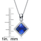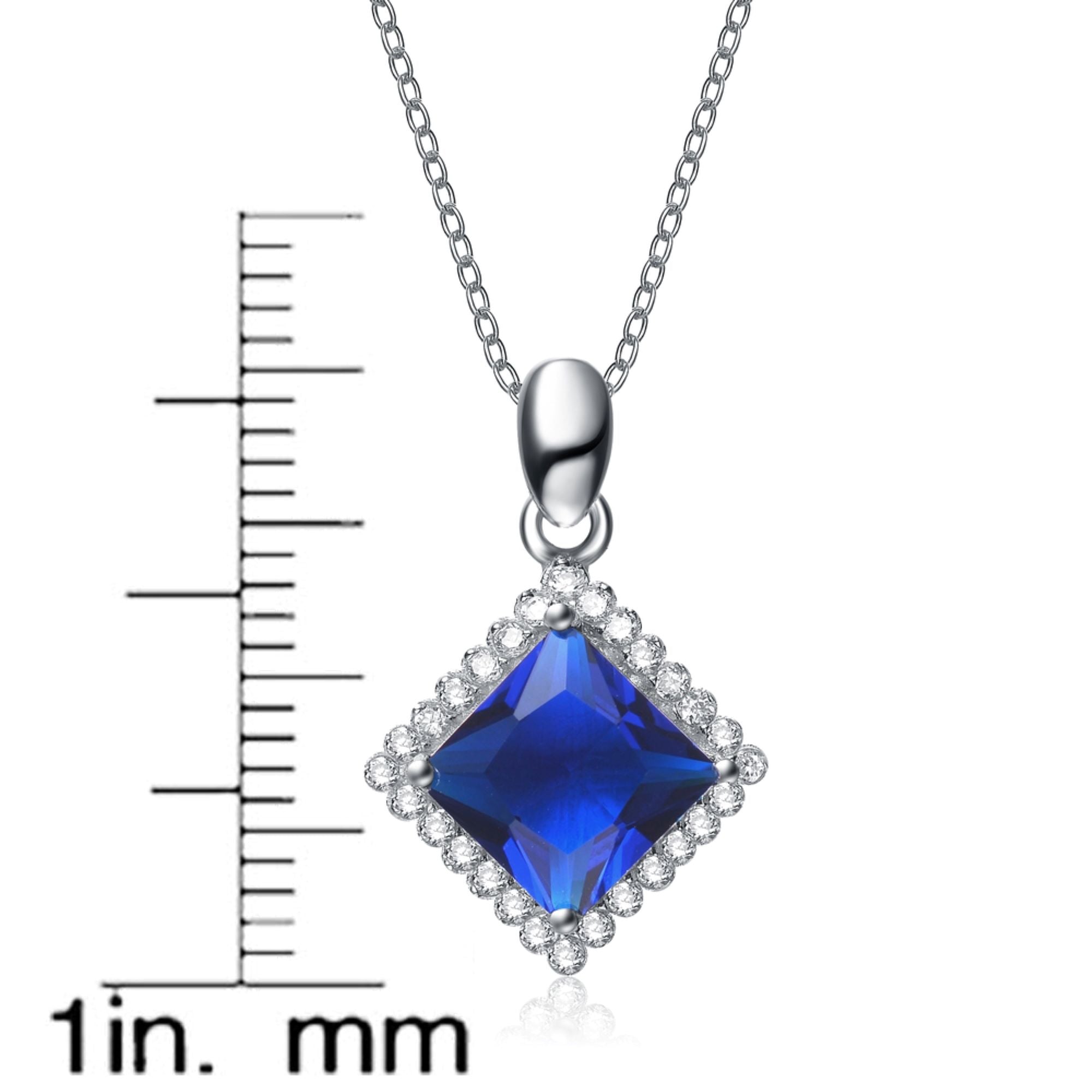This dainty pendant features a blue square-cut cubic zirconia stone outlined with smaller white round ones. Crafted of 0.925 sterling silver, the necklace secures with a spring ring clasp