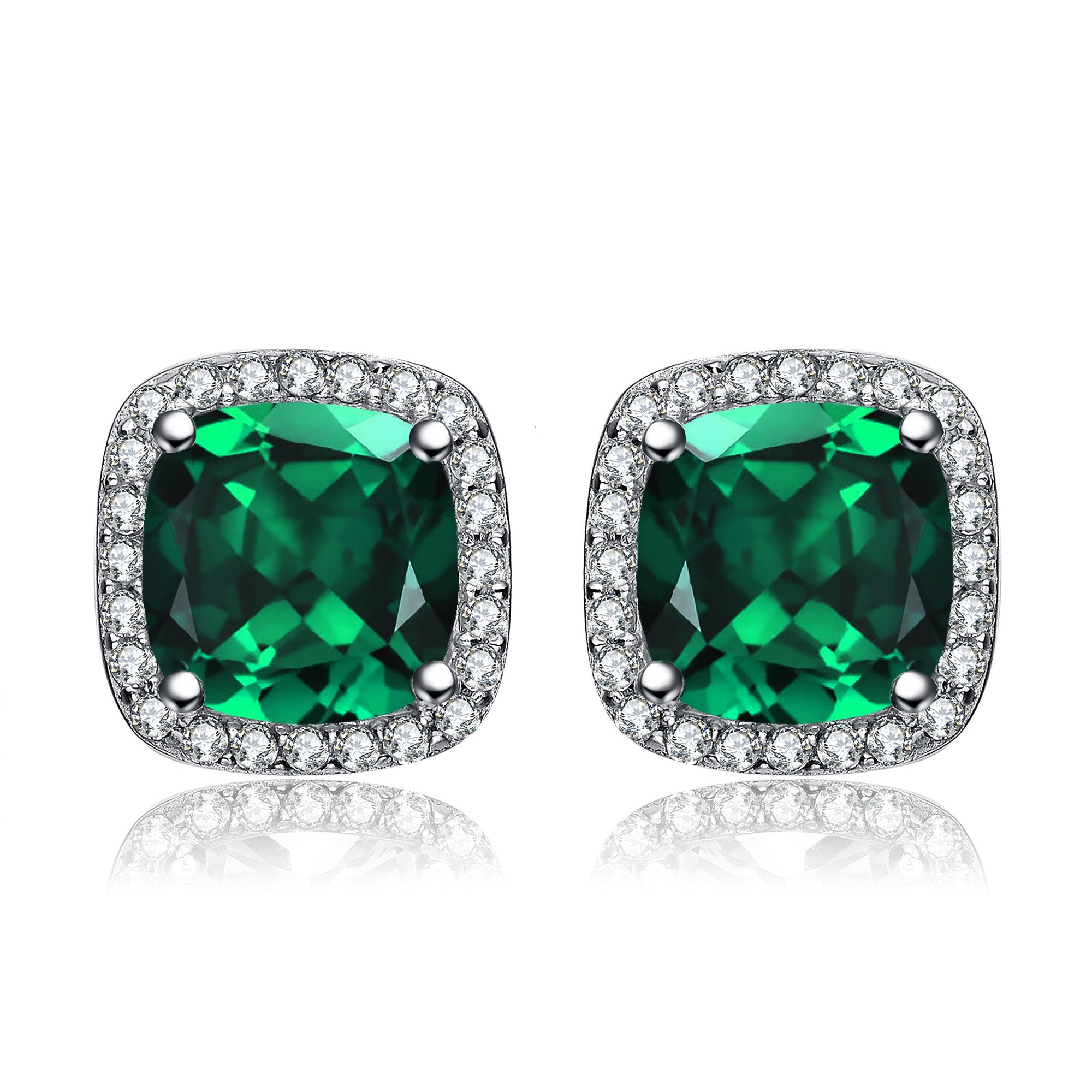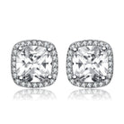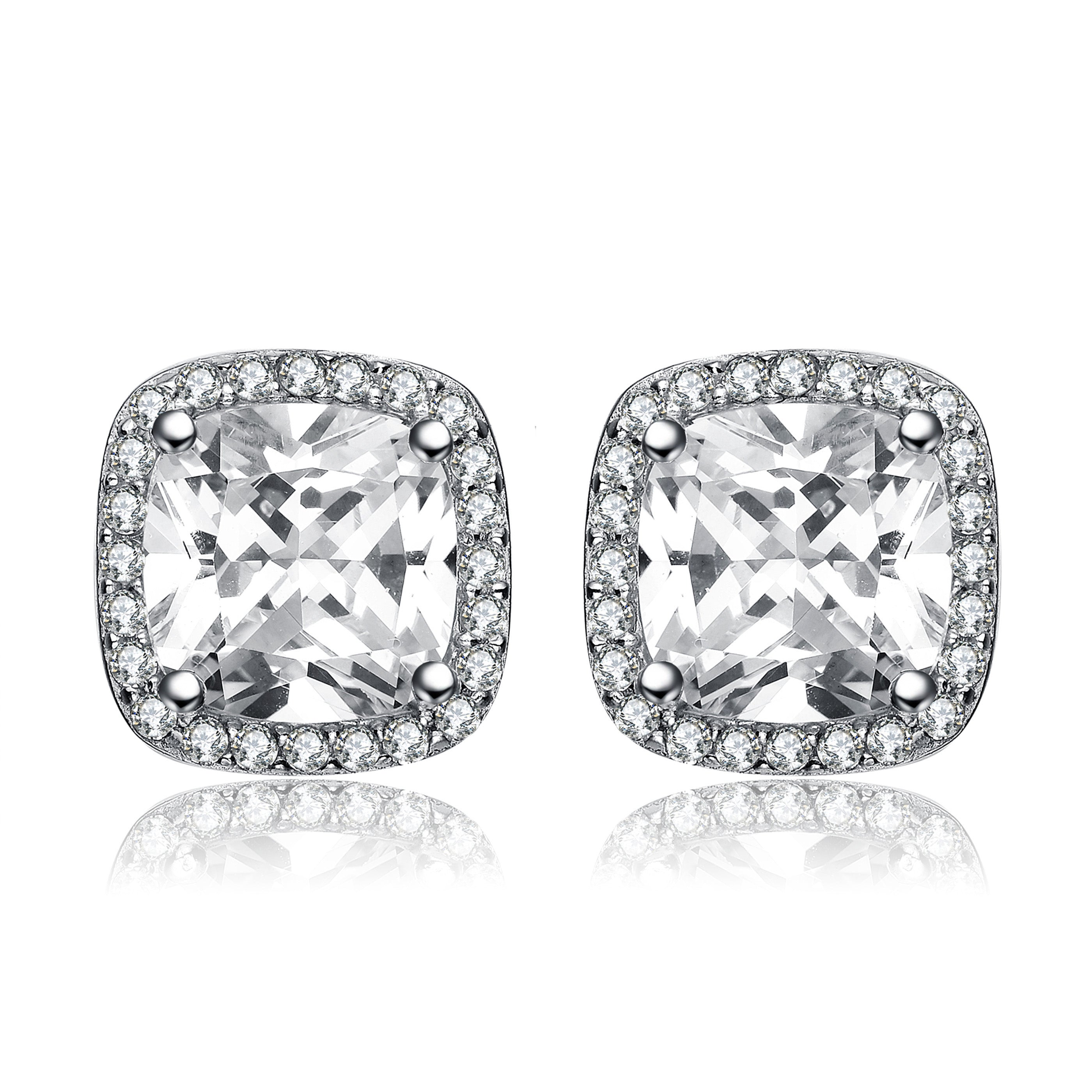 Sterling Silver with Cubic Zirconia Vintage Cushion Cluster Halo Stud Earrings. These brightly polished sterling silver white gold plated stud earrings exude effortless vintage-inspired elegance. Cushions cubic zirconia in four-prong settings. Glittering round brilliant cut -like cubic zirconias pave-prong set in halos give these stud earrings a cluster design. Butterfly backs keep these vibrant earrings secure, making them your favorite go-to at any time. Also available in emerald cubic zirconia.