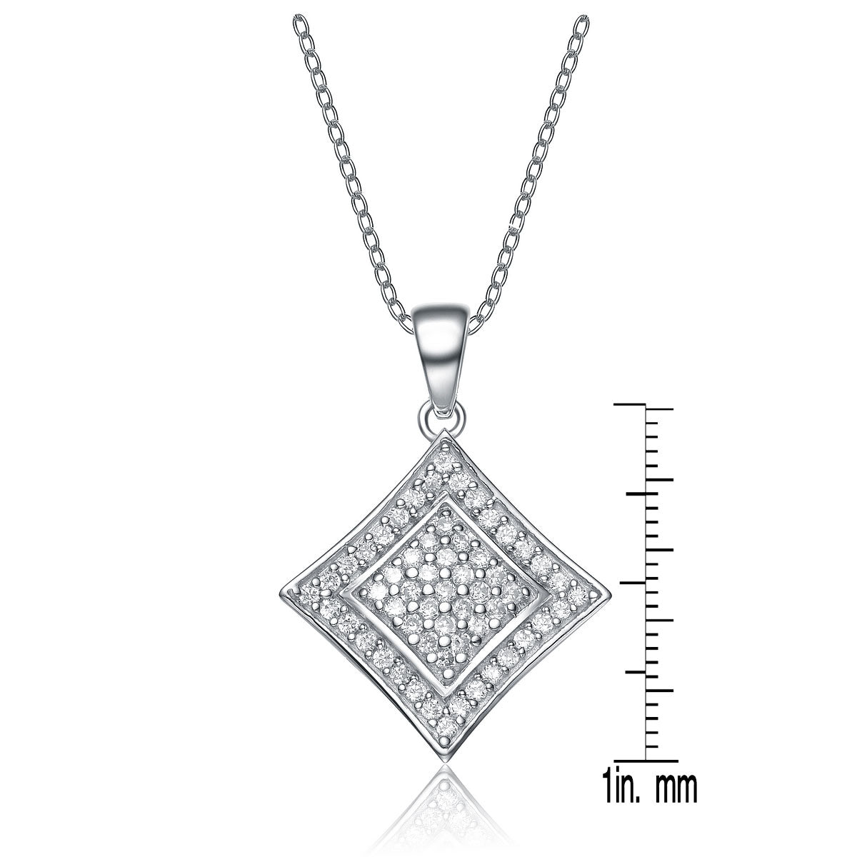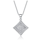 Cubic Zirconia Sterling Silver Rhodium Plated Square Shape Drop Pendant