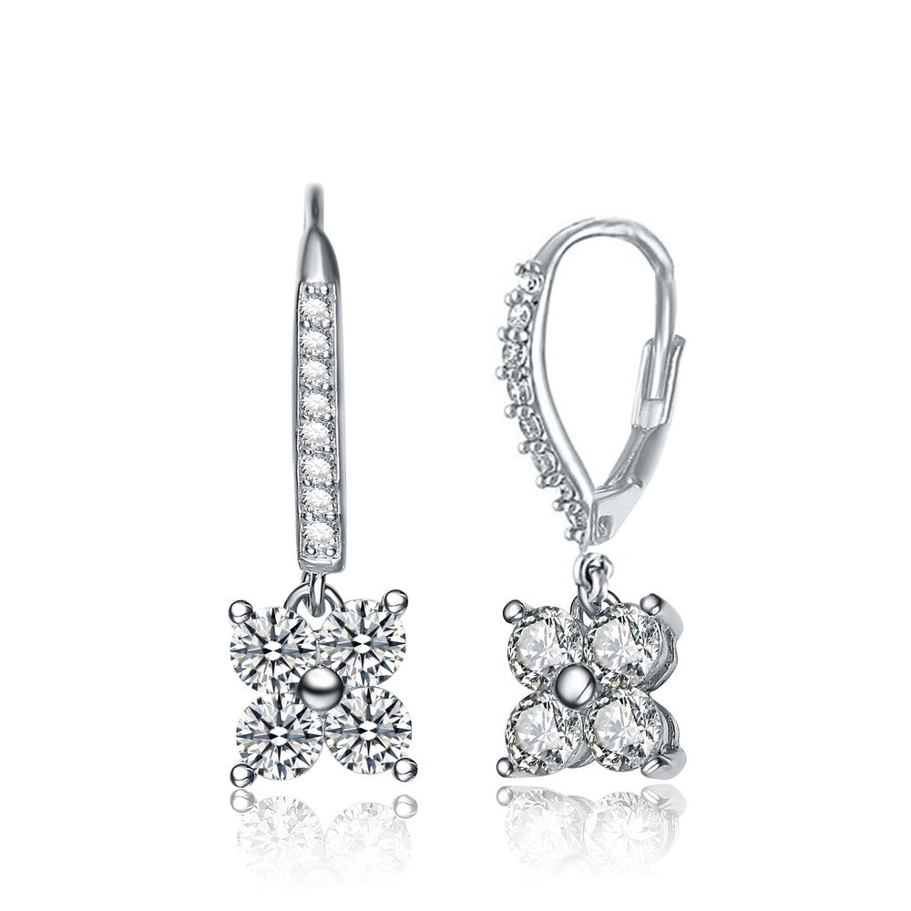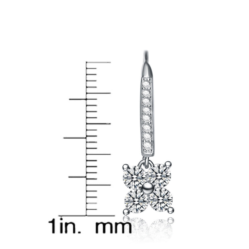 These fine earrings feature white round-cut cubic zirconia stones creating flower shapes. Crafted of 0.925 sterling silver, the earrings secure with euro clasps