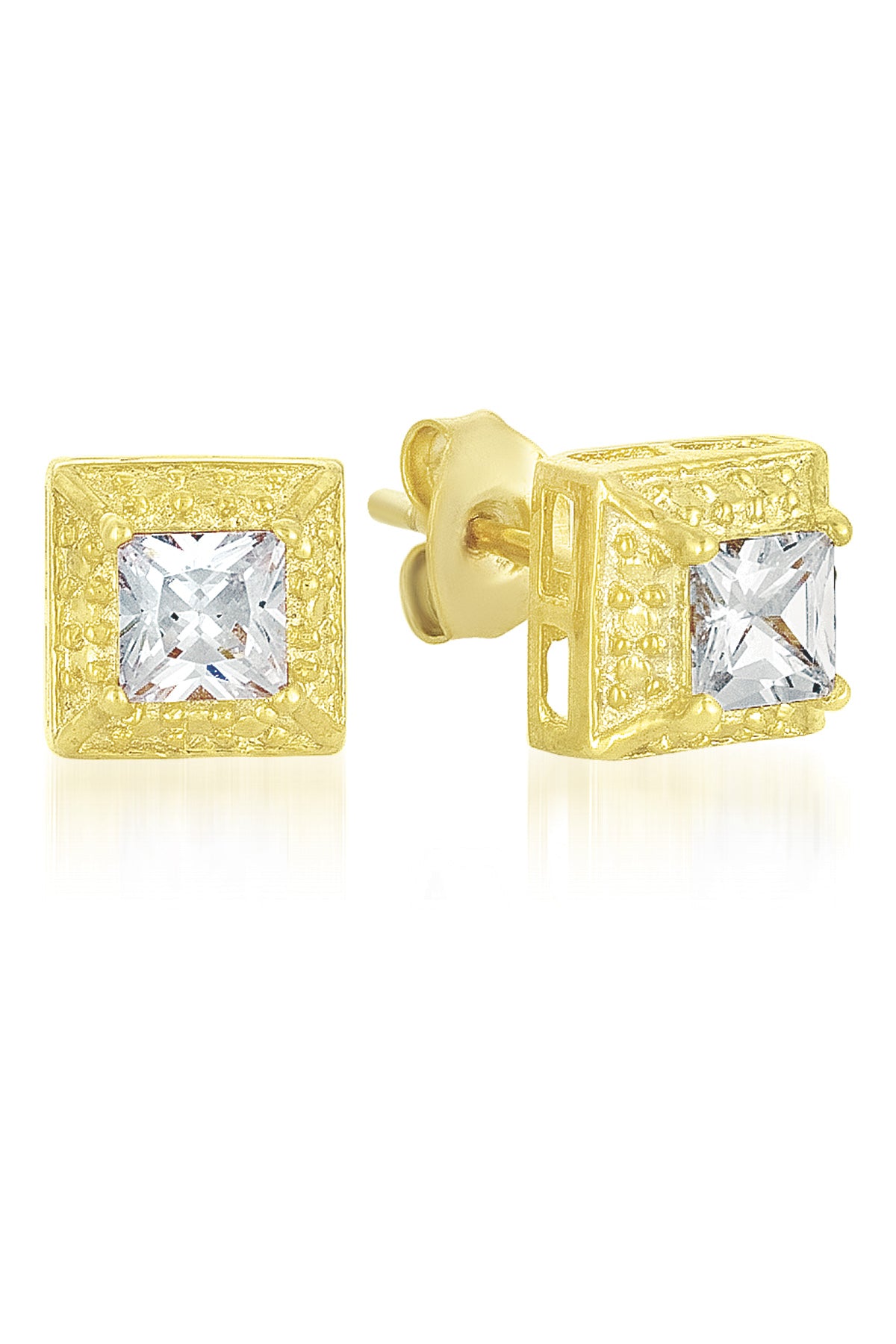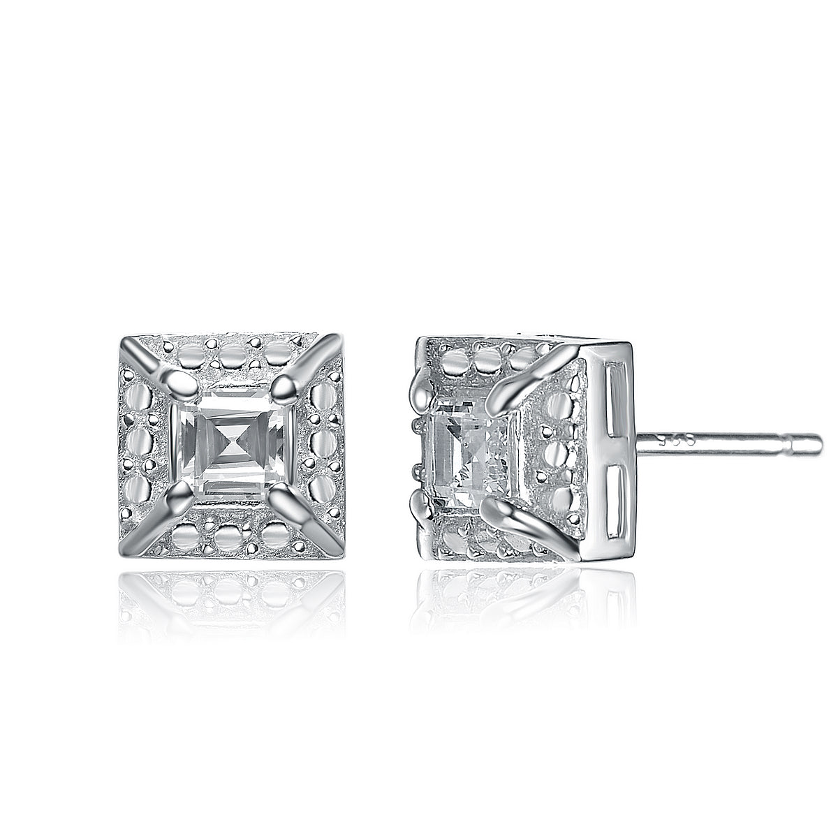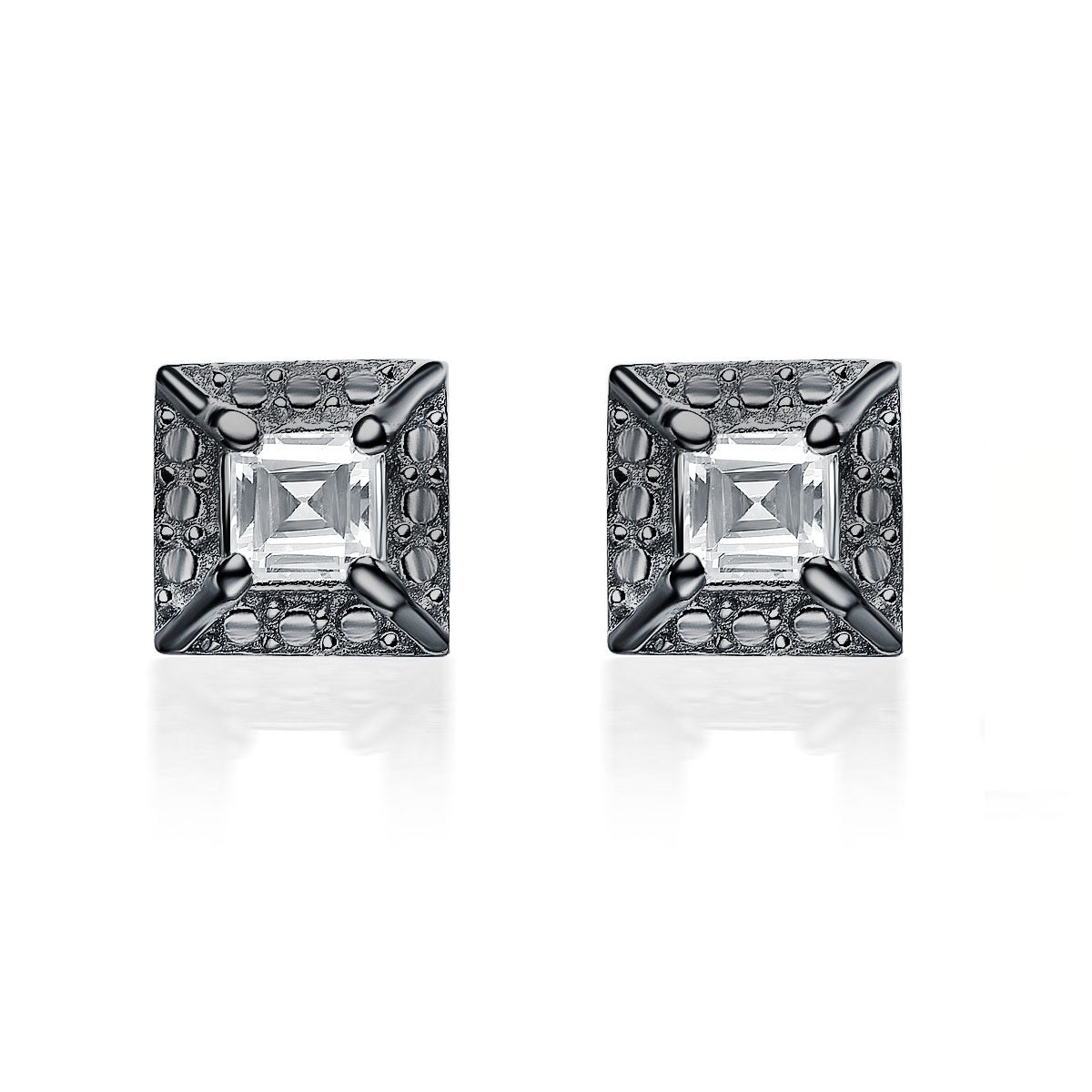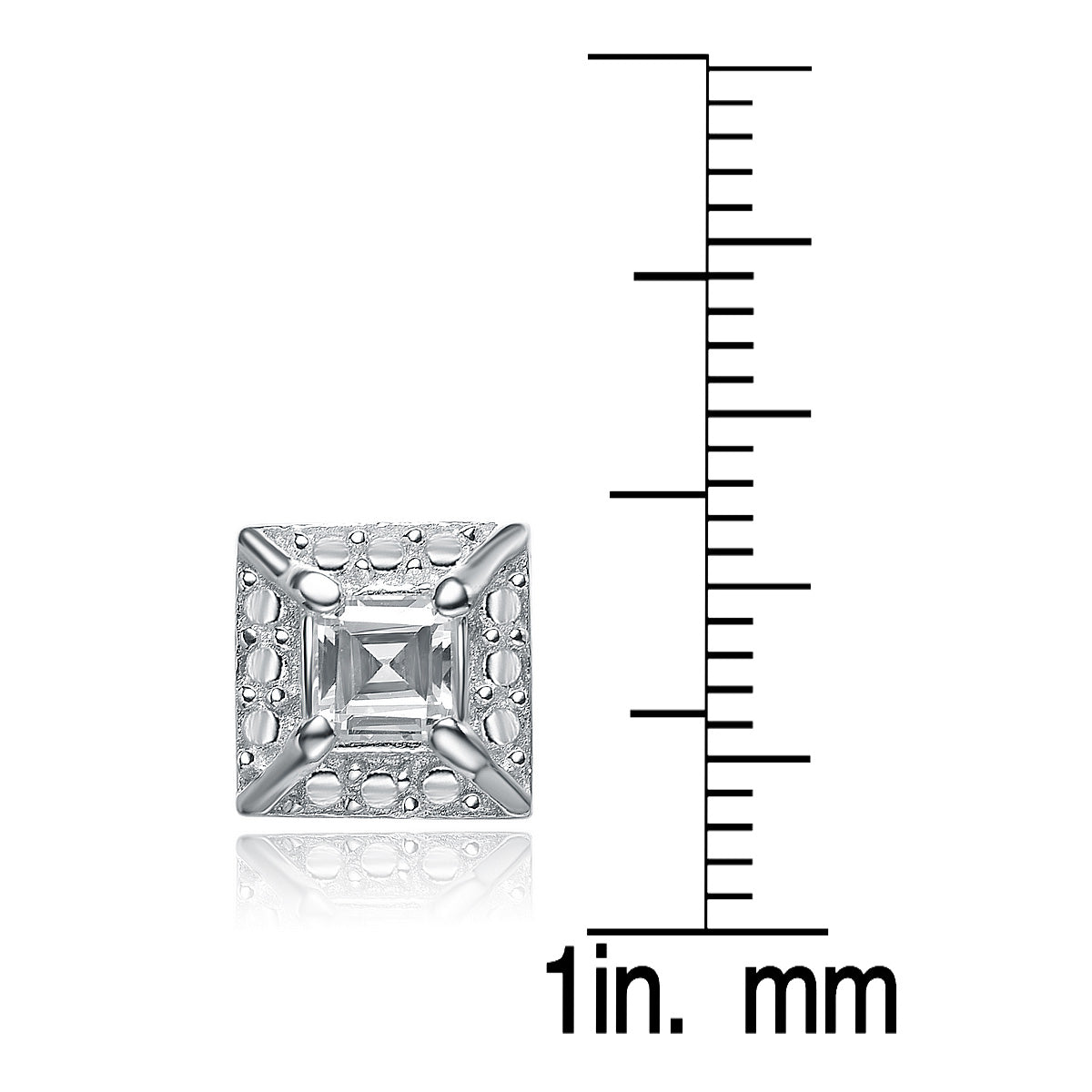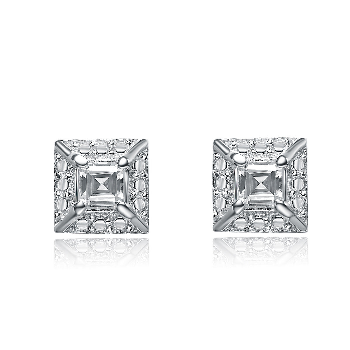 These classy earrings feature one large square stone of cubic zirconia in the center with smaller stones outlining the earrings square shape. The stones are set in highly polished sterling silver