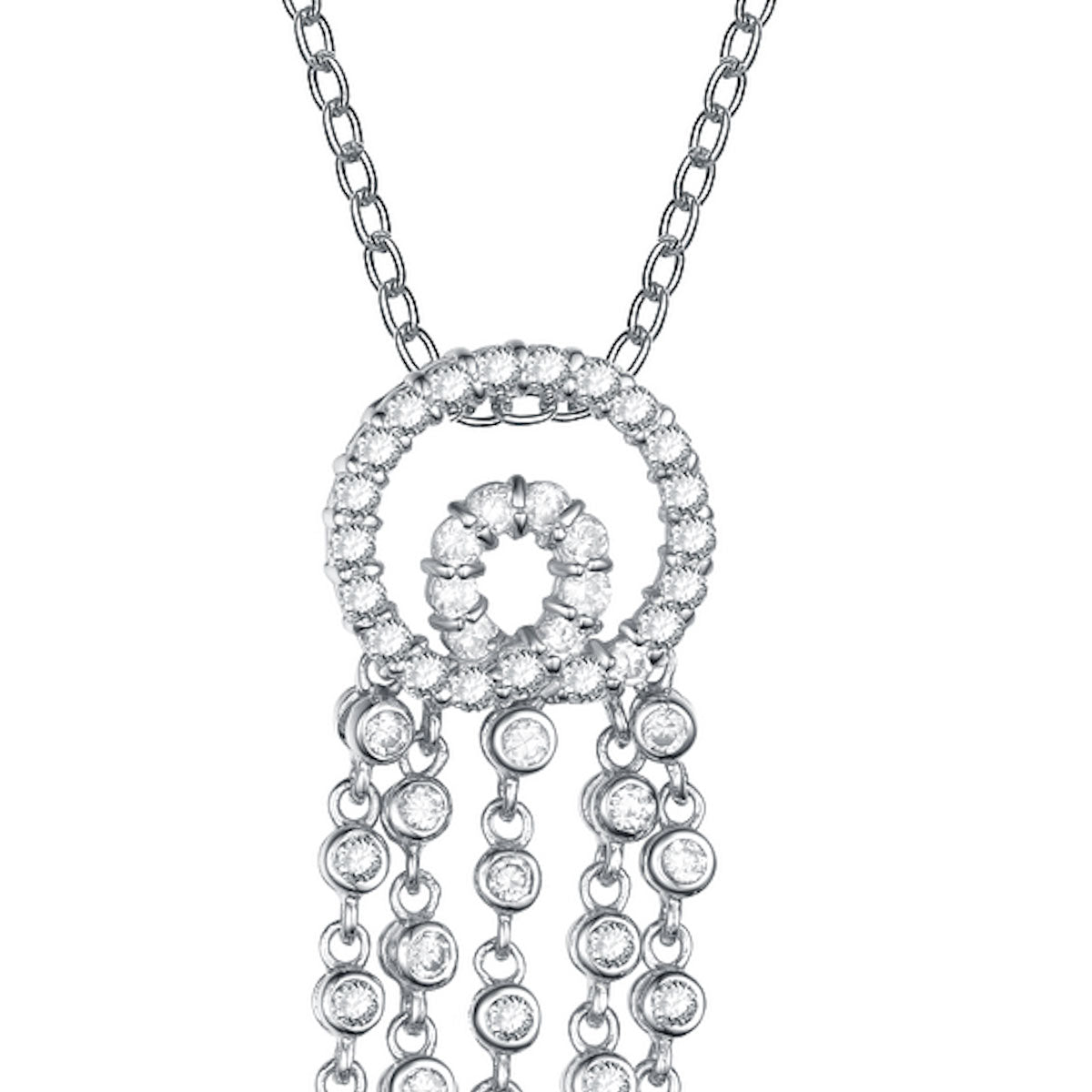 This elegant pendant features round-cut cubic zirconia gemstones set in sterling silver. Long rows march along one after another creating a tasseled look It comes with an 18 inch chain and has a spring ring closure.