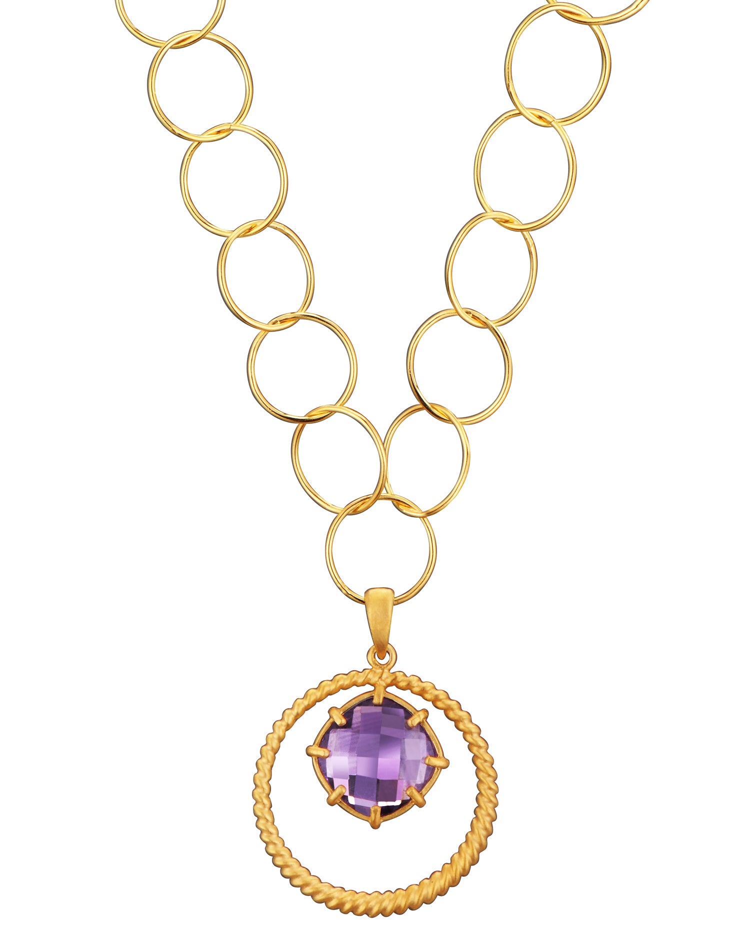 This dainty drop necklace is handcrafted of .925 sterling silver with a cable texture in rose plating. The necklace showcases a cushion-cut created purple quartz stone and secures with a spring ring clasp.