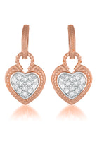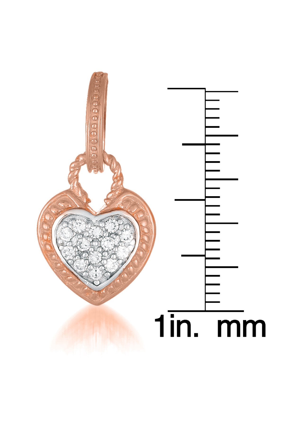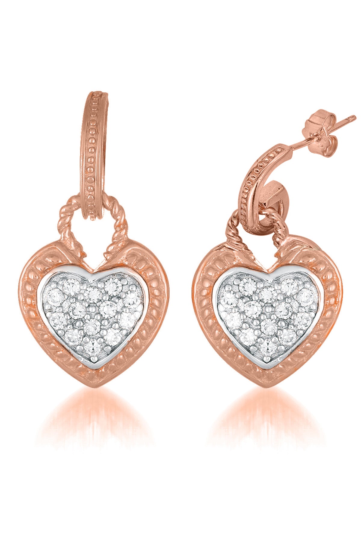 Shimmering clear cubic zirconia are prong-set inside these pretty heart-shaped earrings. These earrings are crafted of .925 sterling silver with lustrous rose gold plating.