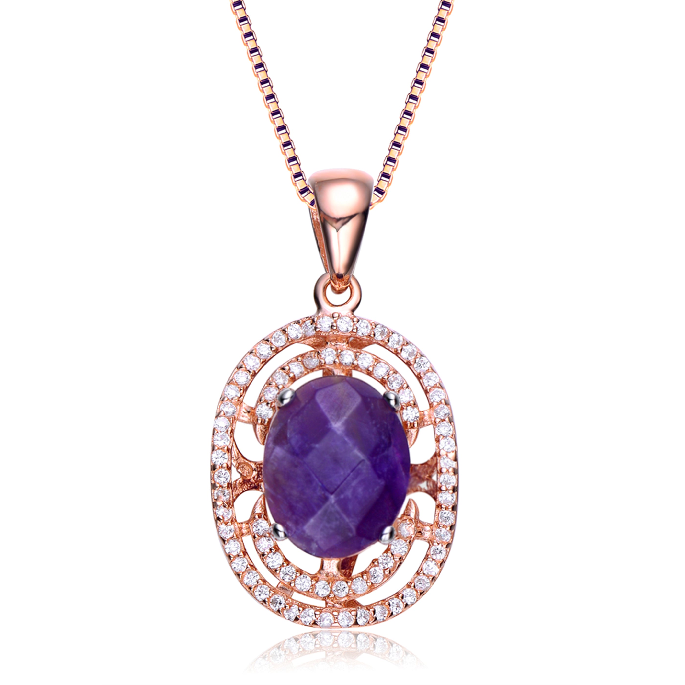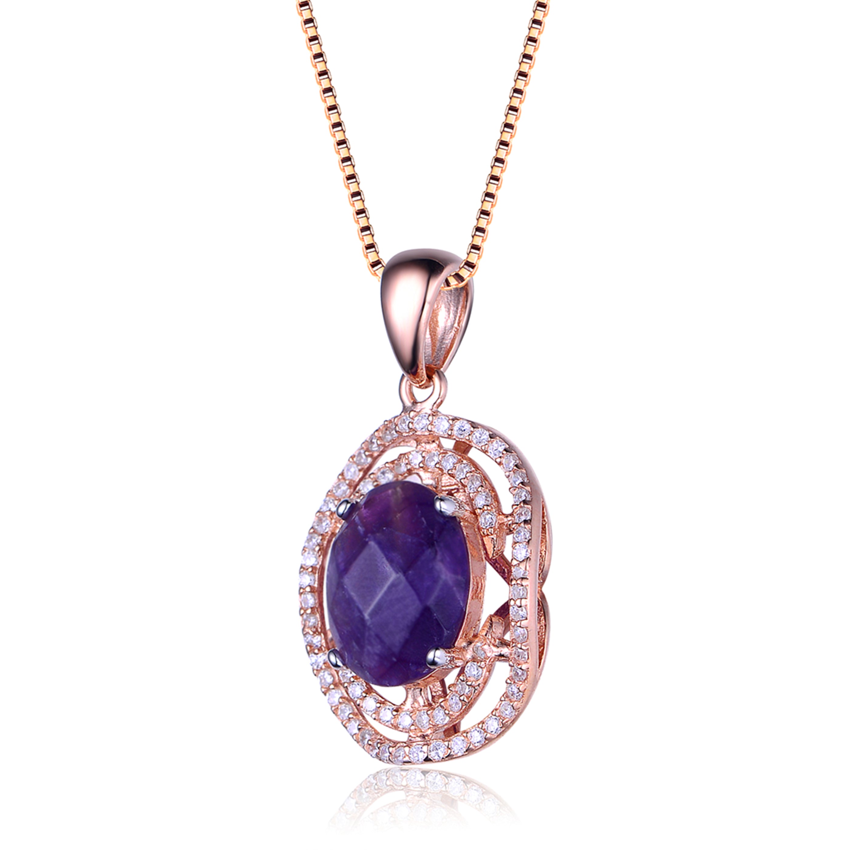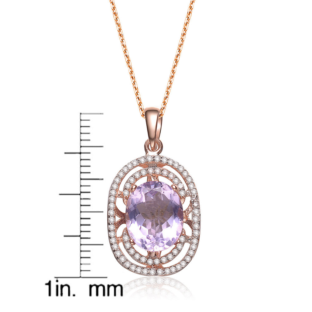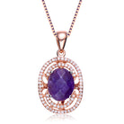 This dainty pendant features an oval-cut purple cubic zirconia stone outlined with smaller white cubic zirconia stones. Crafted of .925 sterling silver, the necklace secures with a spring ring clasp.