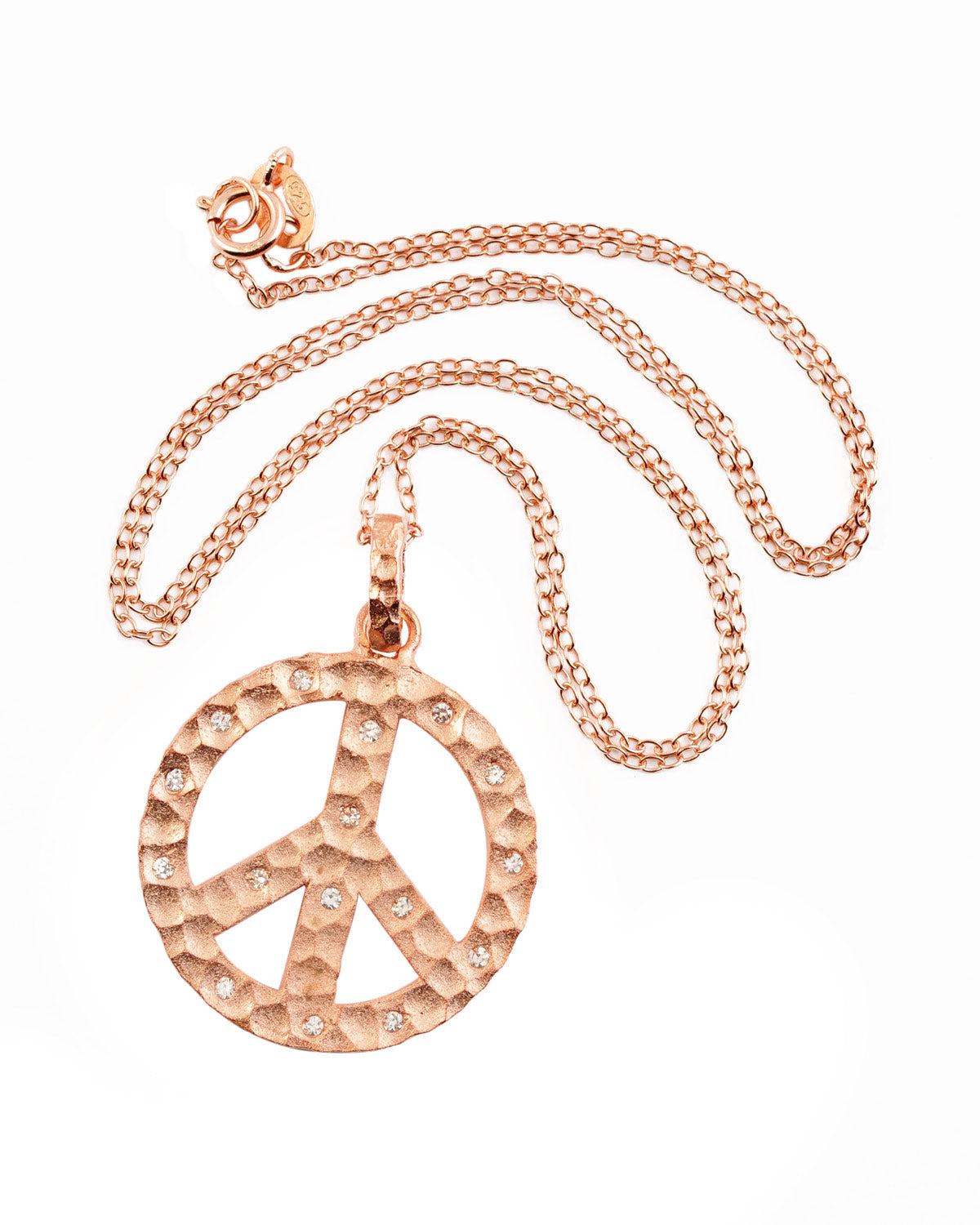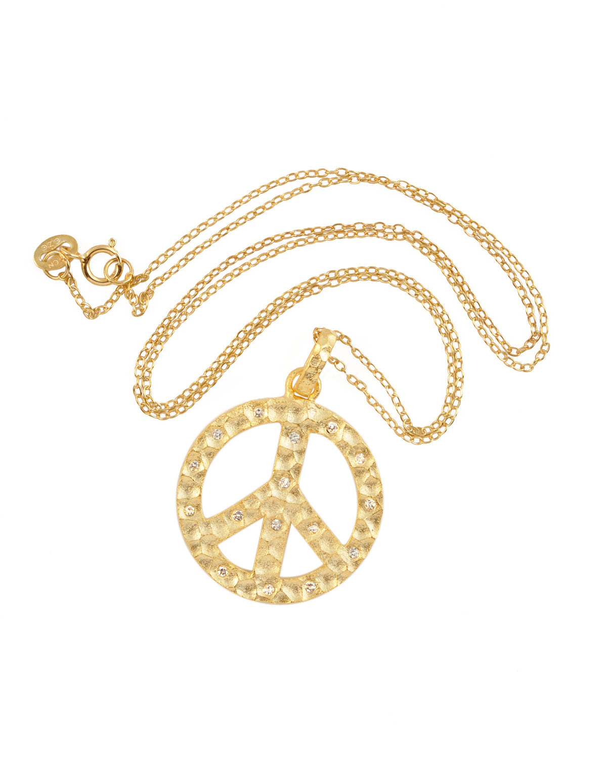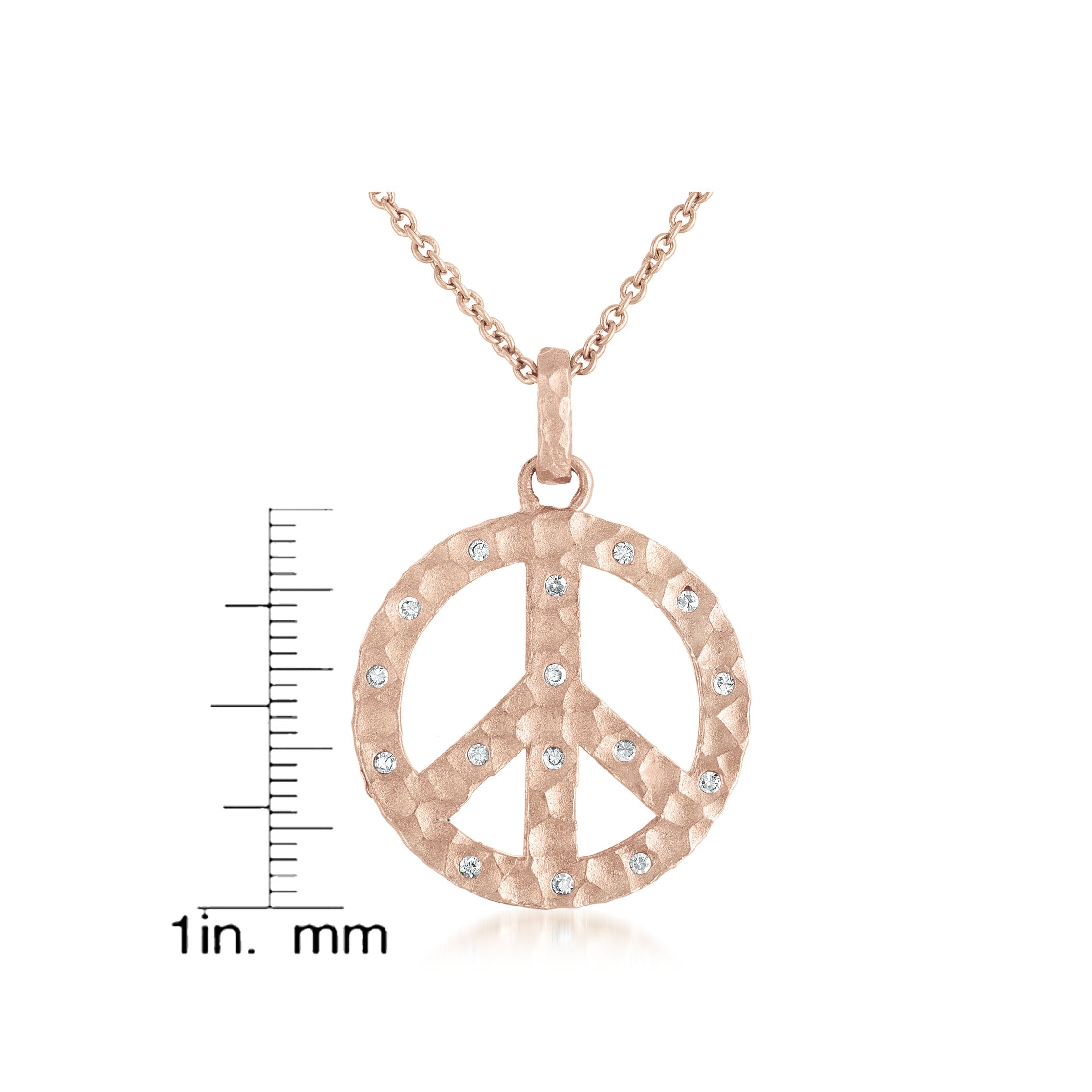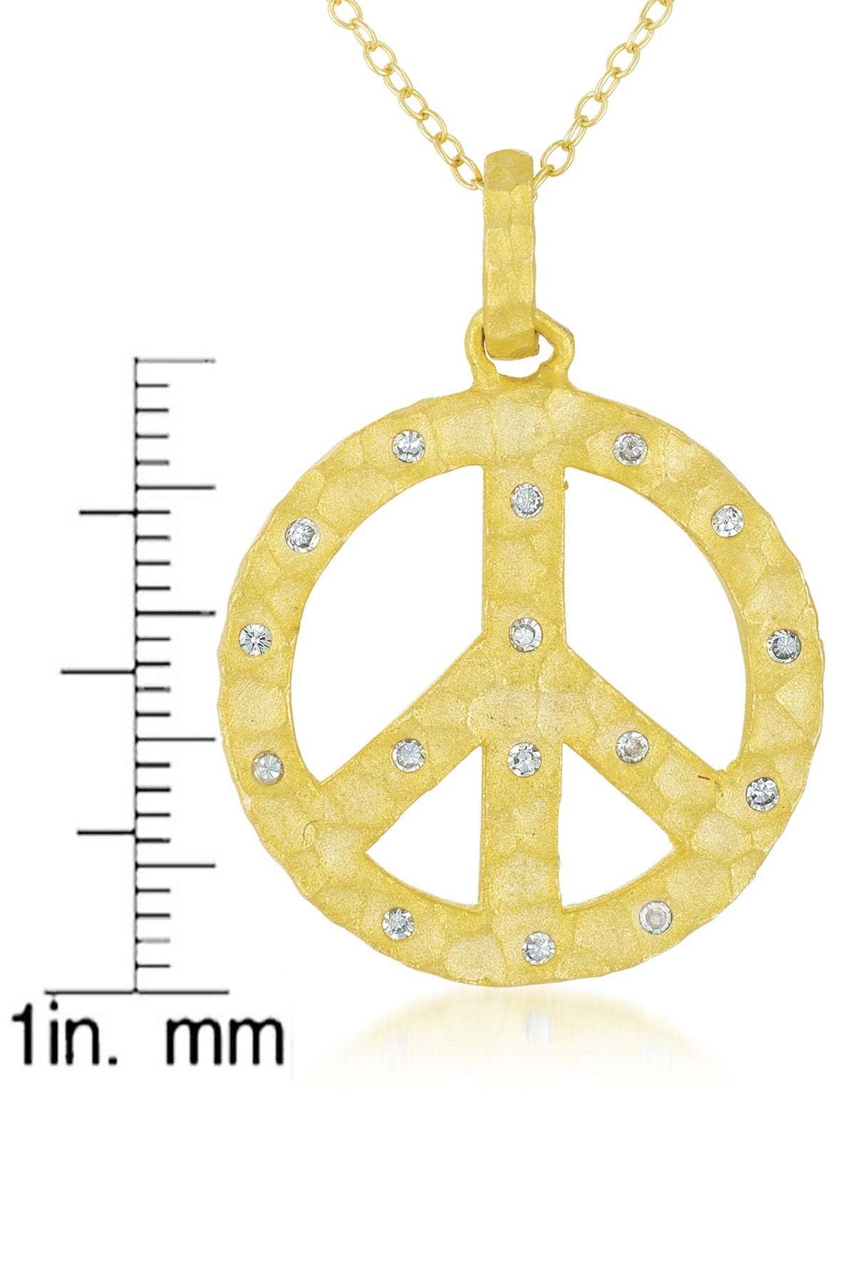 With an 18 inch chain, this pendant isn't overbearing, but the dimpled texture of the peace sign pendant adds depth and attraction to the jewelry. The peace symbol is decorated with cubic zirconia in a pave setting.