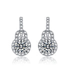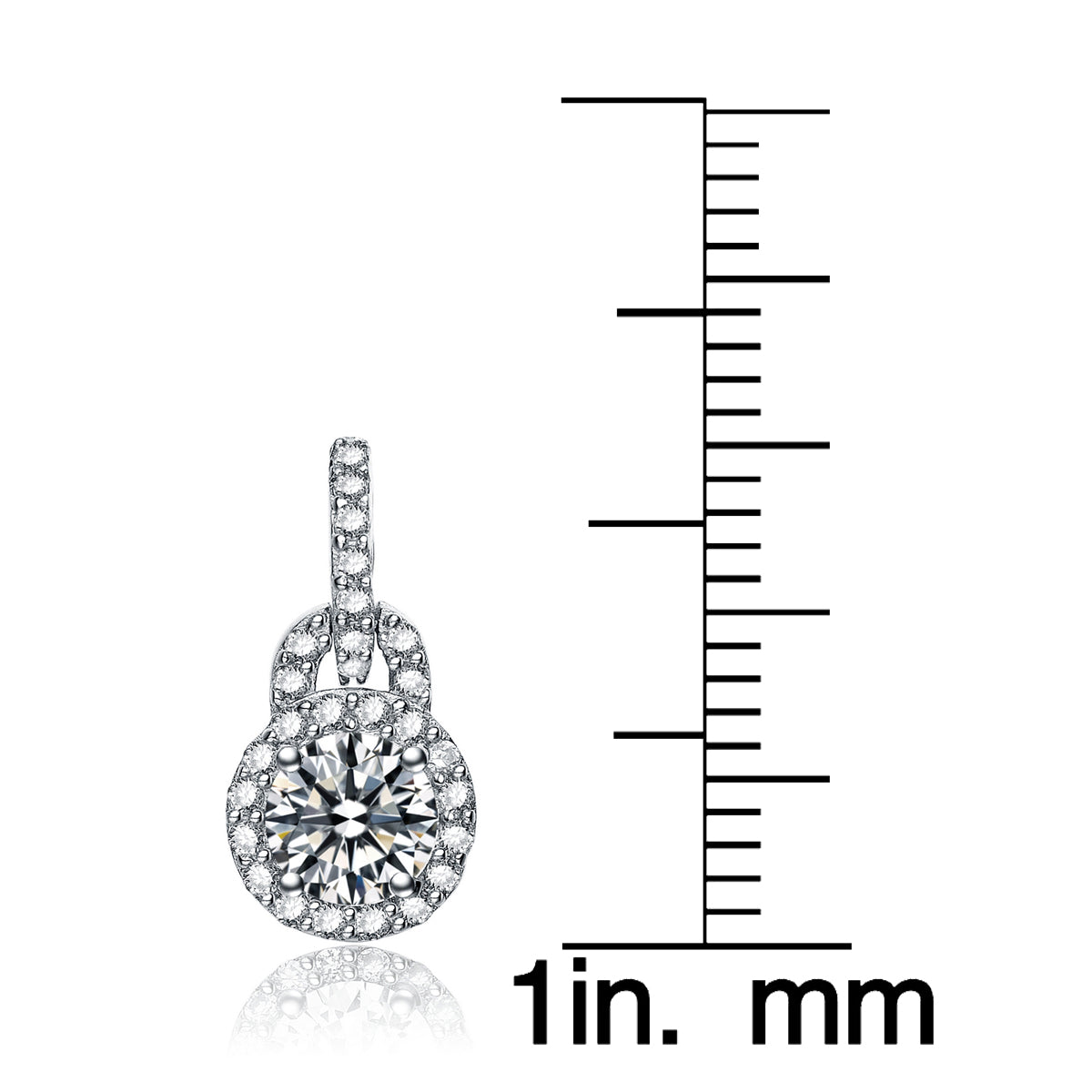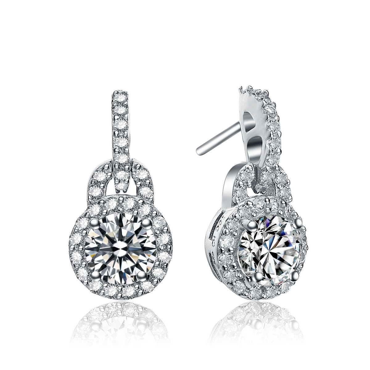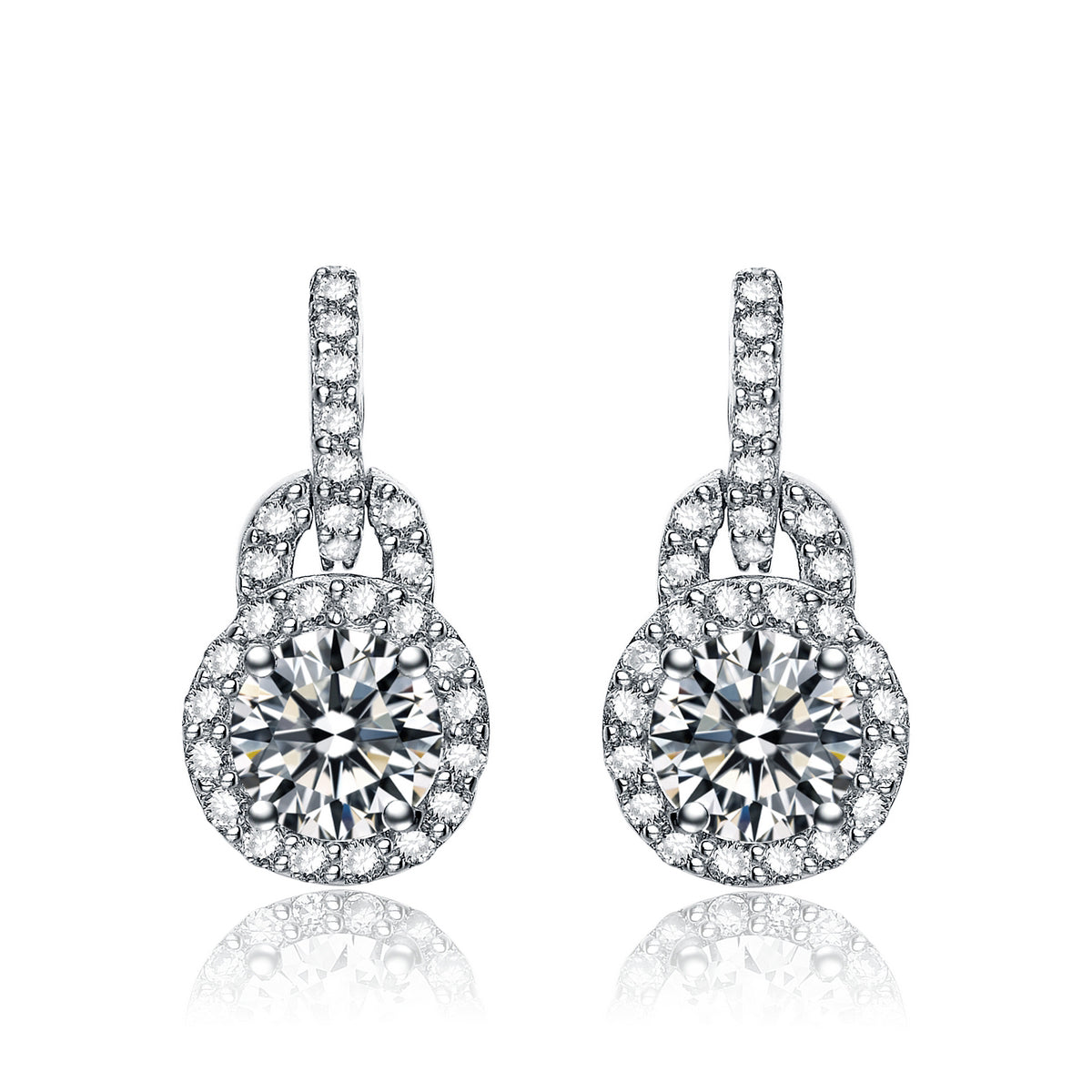 These neat earrings are decorated with white round-cut cubic zirconia stones. Crafted of .925 sterling silver, these beautiful earrings secure with butterfly clasps.