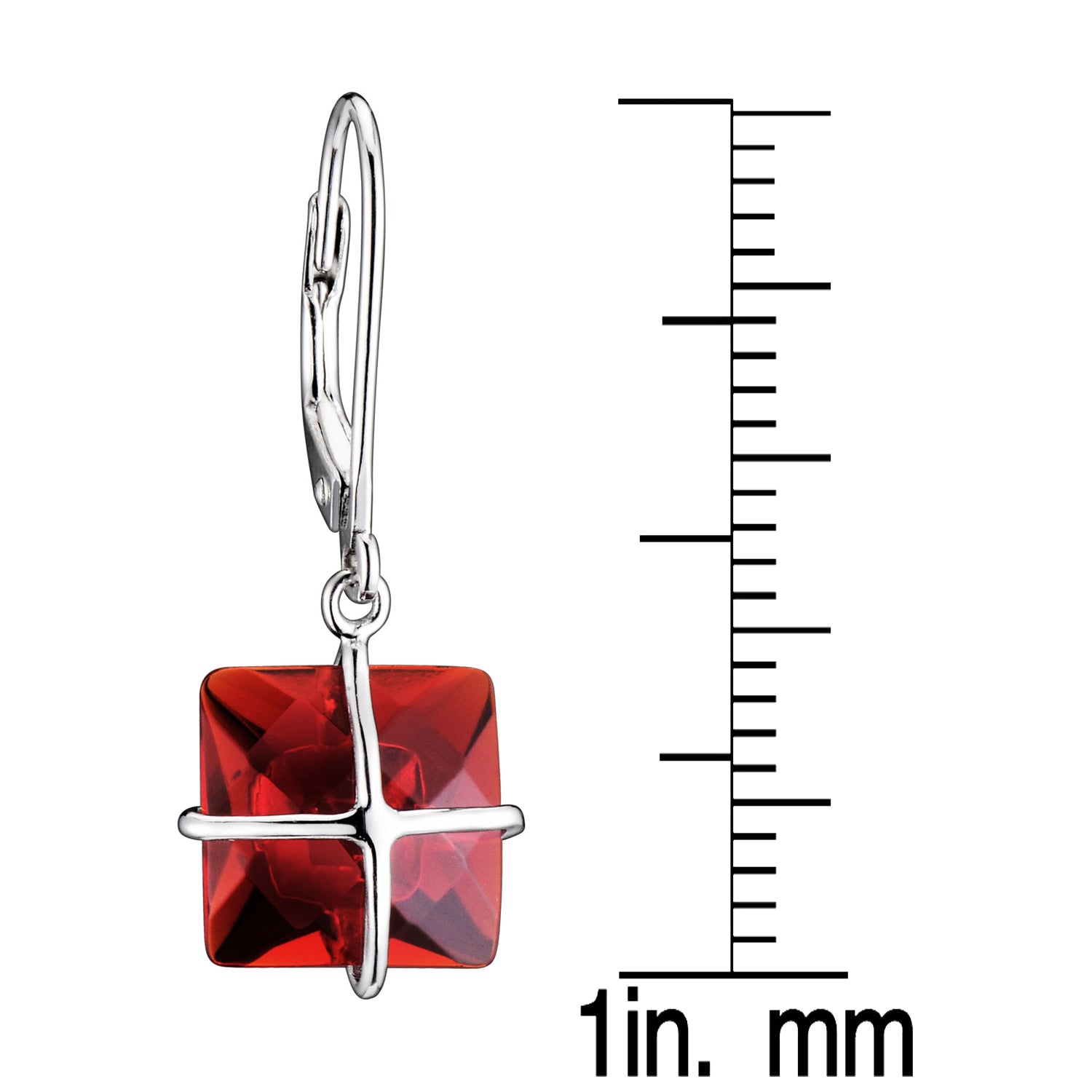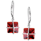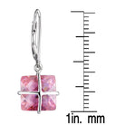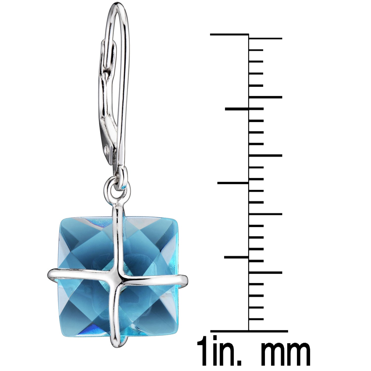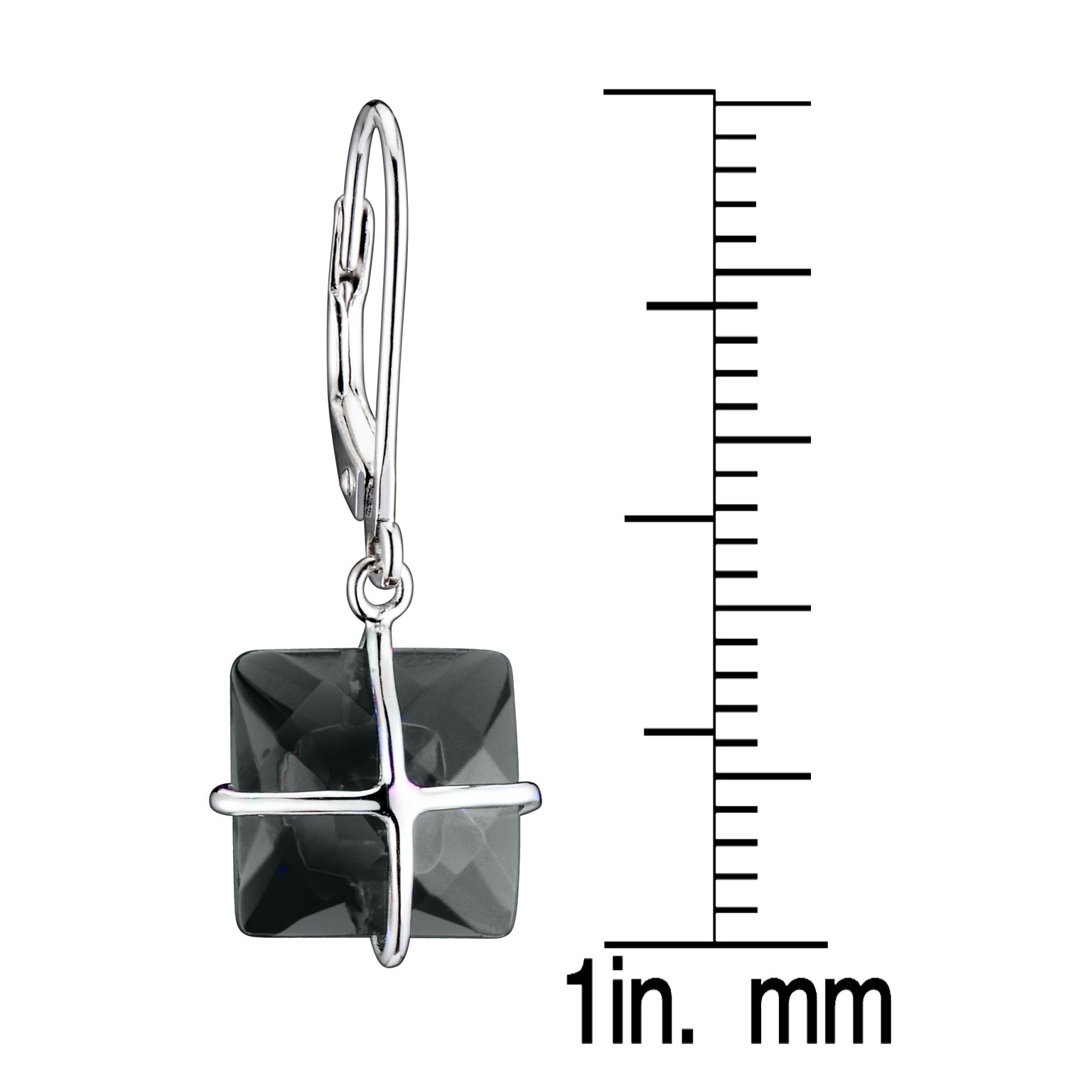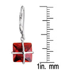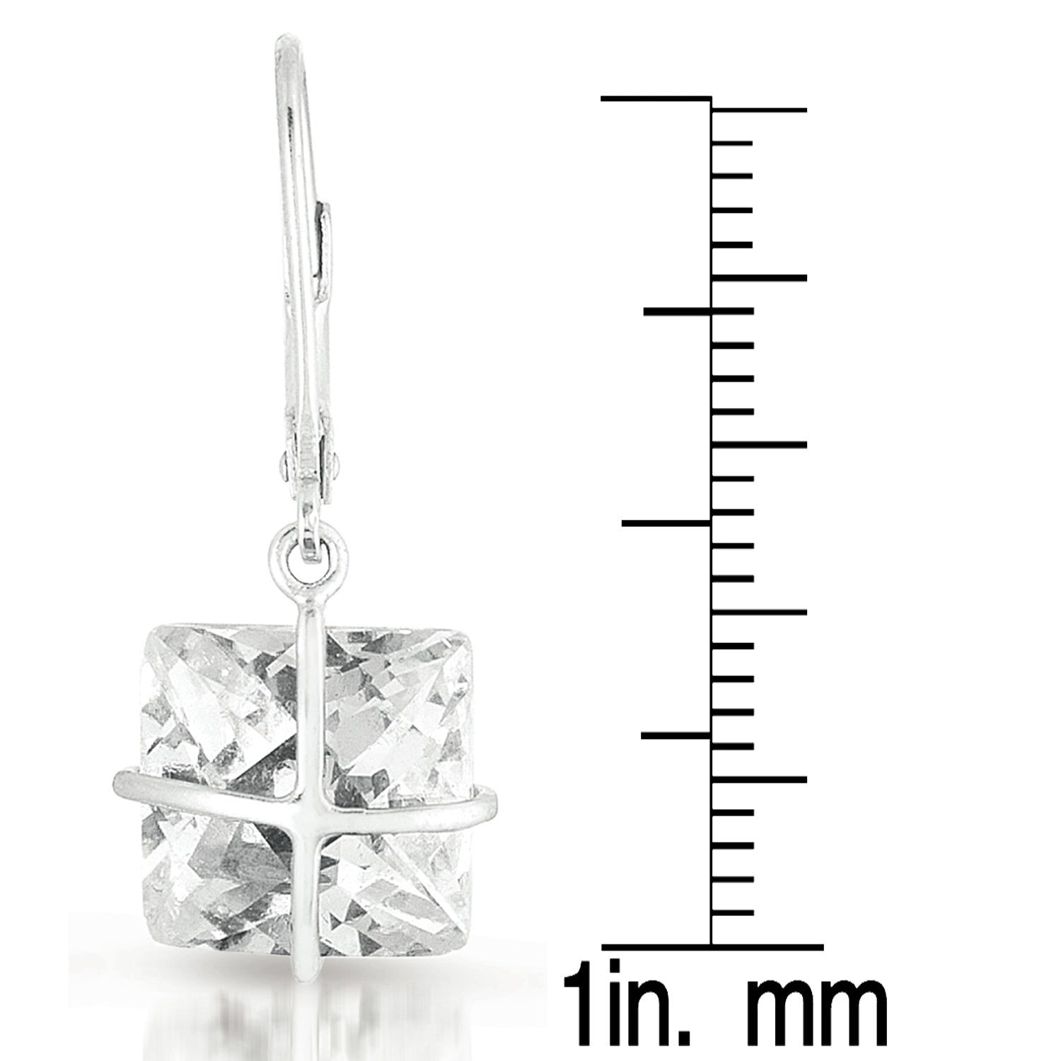 Cubic Zirconia Sterling Silver Wrapped Present Square Drop Euro Earrings. Each of these fine earrings features a single square-cut cubic zirconia stone clutched in euro wire dangling from a leverback clasp. The earrings are crafted of fine .925 sterling silver with rhodium plating. Availabe in stone colors: Amthyst, Black, Blue Topaz.