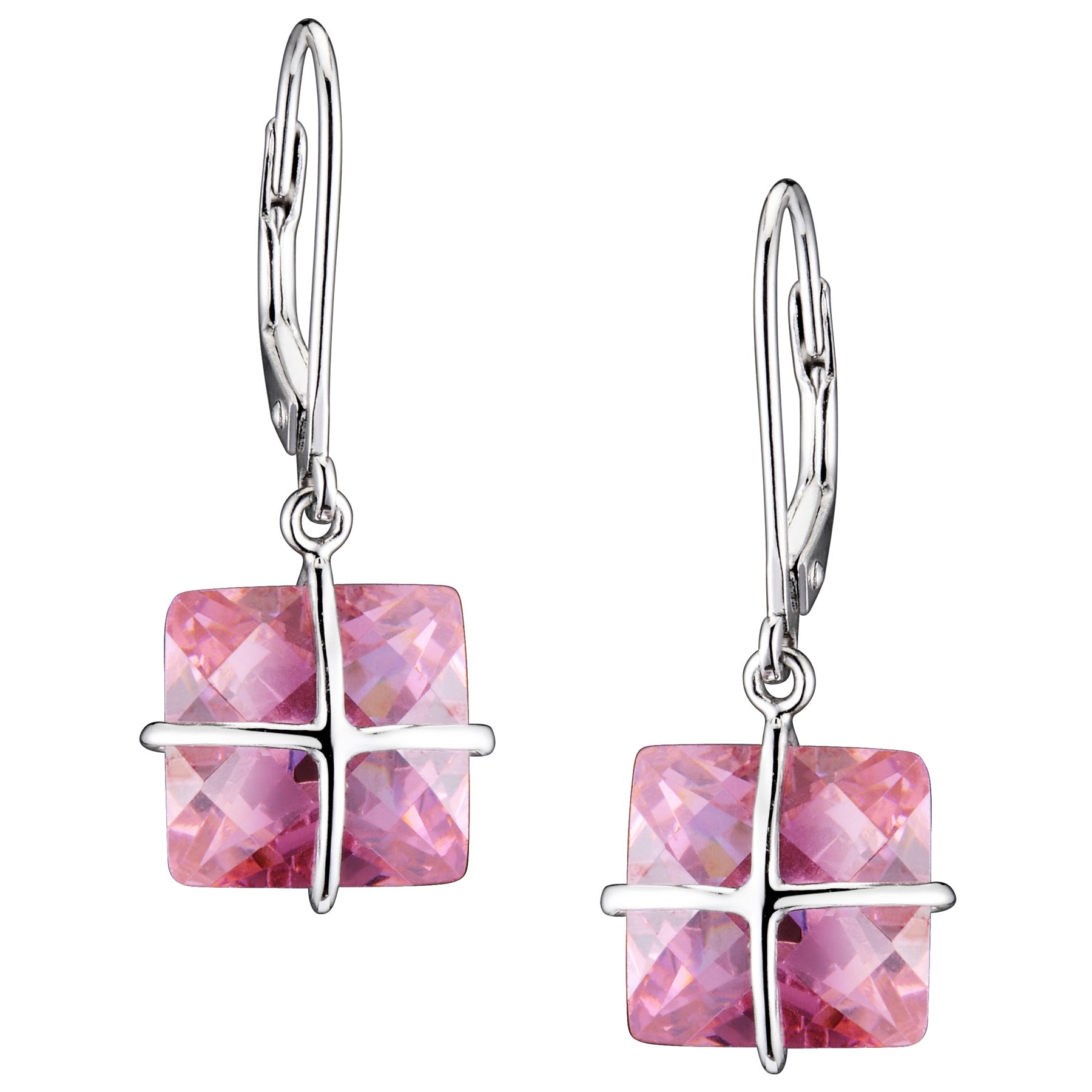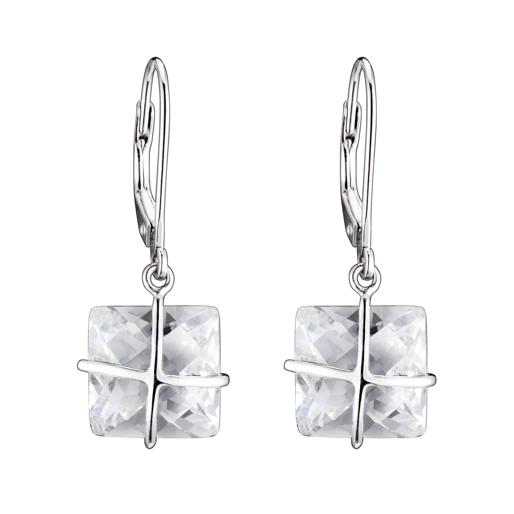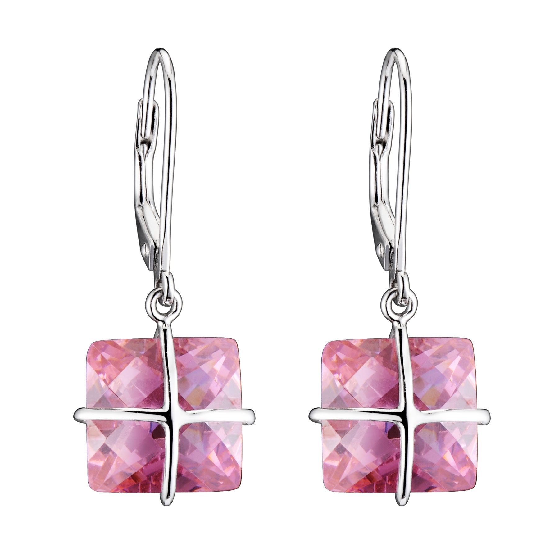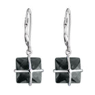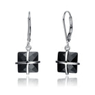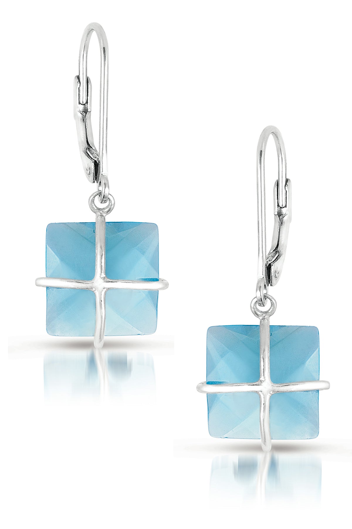Cubic Zirconia Sterling Silver Wrapped Present Square Drop Euro Earrings. Each of these fine earrings features a single square-cut cubic zirconia stone clutched in euro wire dangling from a leverback clasp. The earrings are crafted of fine .925 sterling silver with rhodium plating. Availabe in stone colors: Amthyst, Black, Blue Topaz.