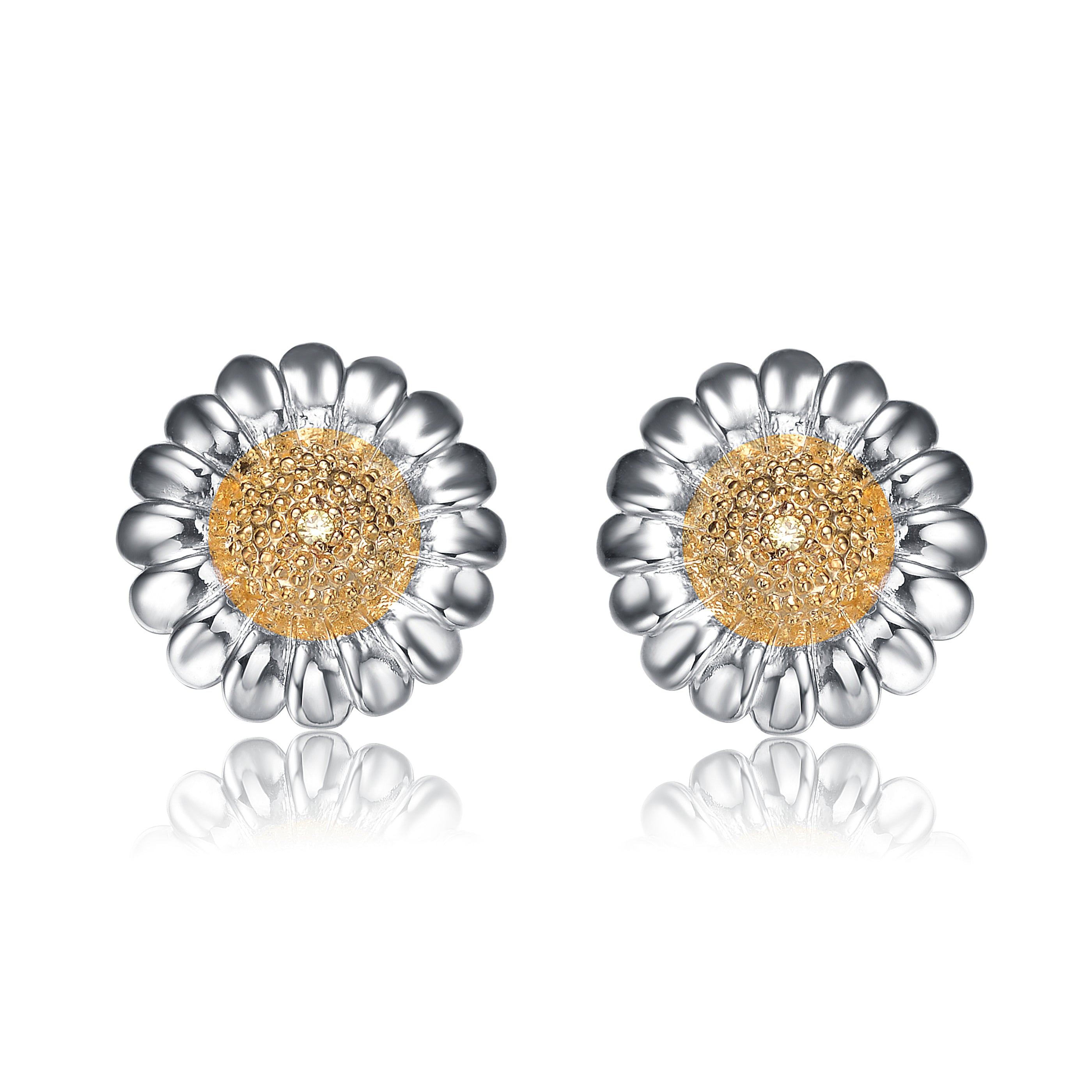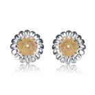 These dainty sunflower shape earrings are enhanced with dazzling yellow round-cut cubic zirconia stones. Crafted of .925 sterling silver, with gold plating, the earrings secure with butterfly clasps. Also available in Rose Gold