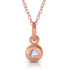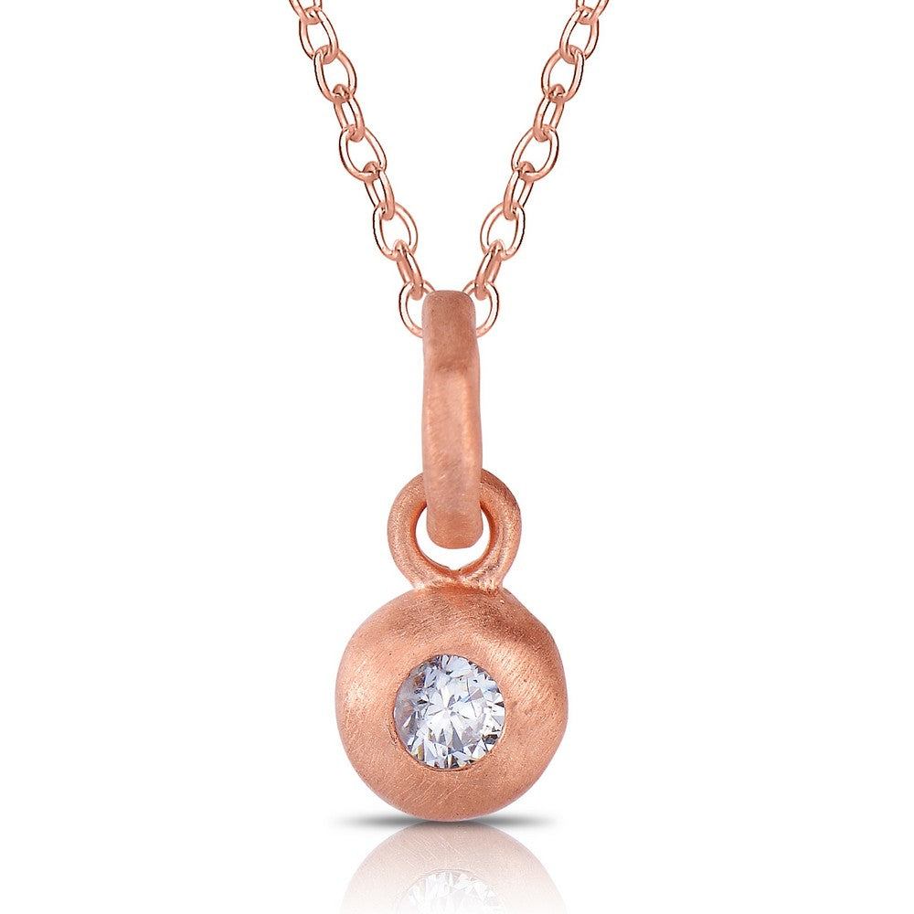 This dainty round pendant is decorated with a white round-cut cubic zirconia stone in the center. Crafted of .925 .925 Sterling silver with satin-finish rose gold plating, this necklace secures with a spring ring clasp