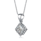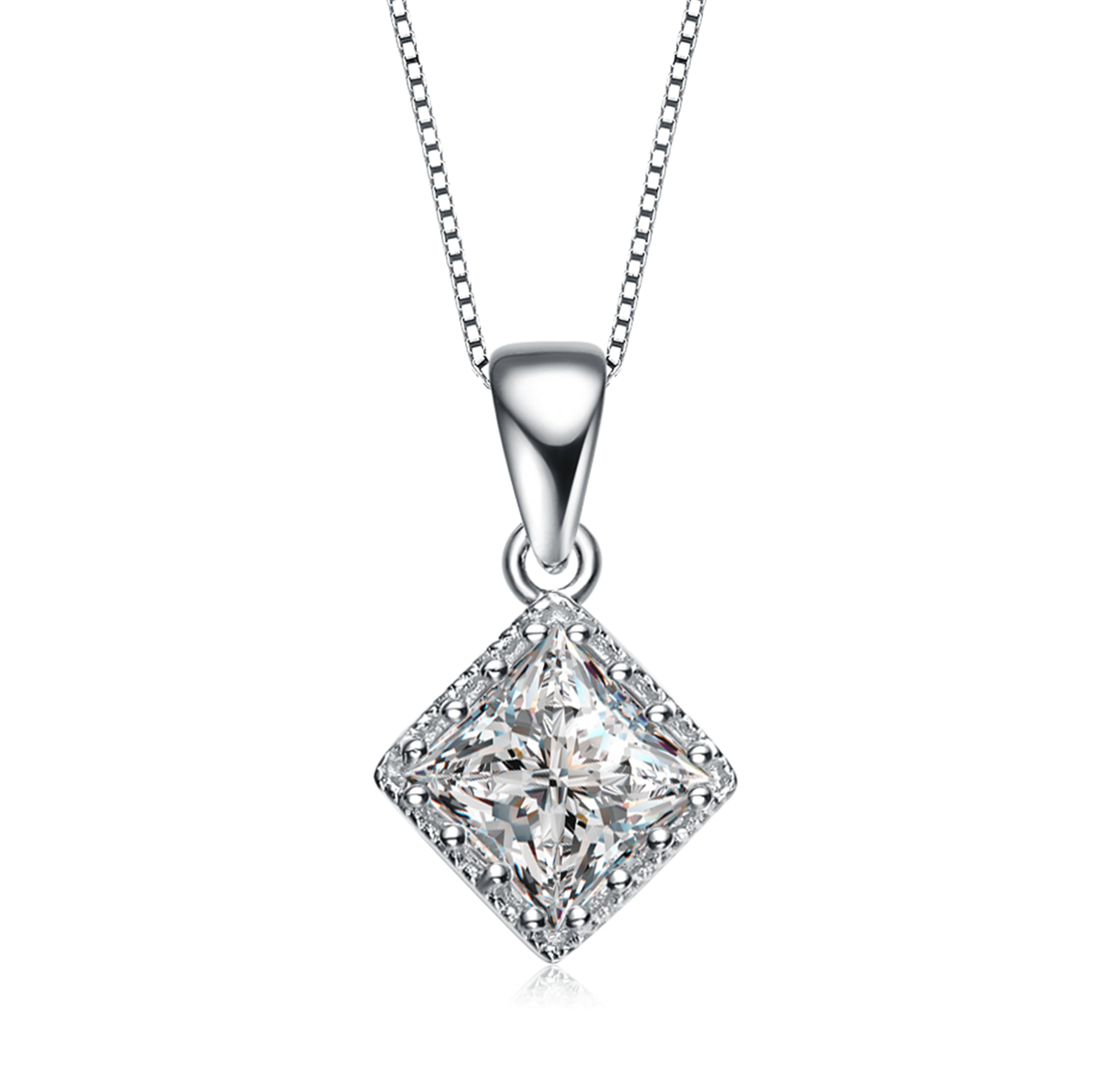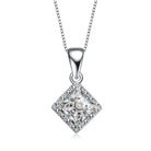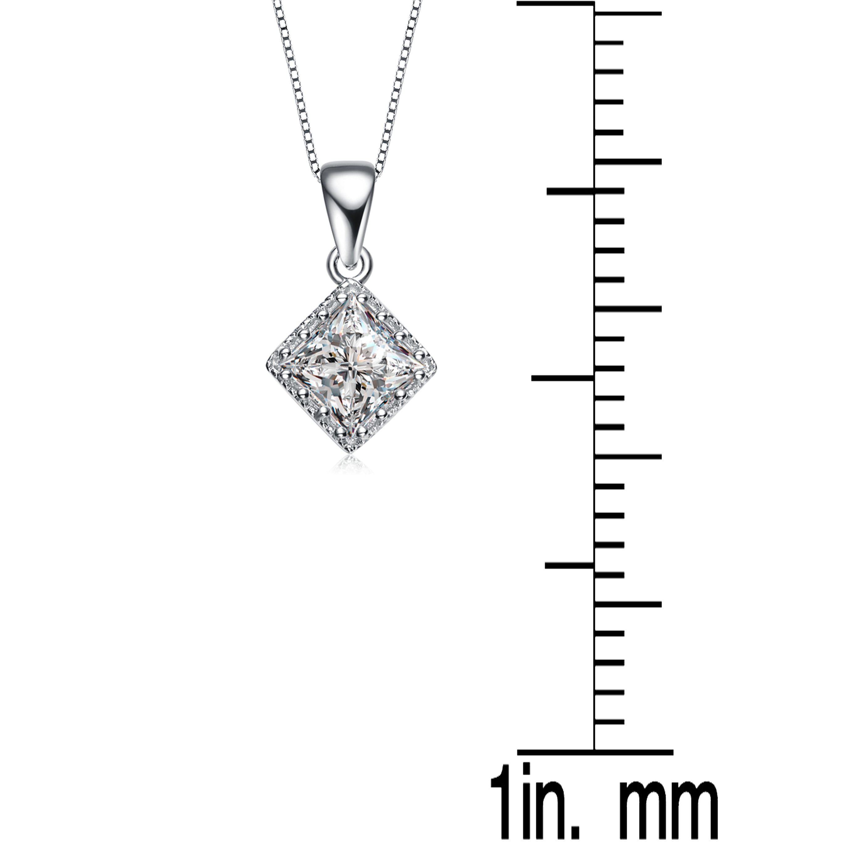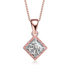 This elegant pendant showcases a dazzling square-cut cubic zirconia stone set in prongs. Crafted of .925 Sterling silver, with rose gold plating, the necklace secures with a spring ring clasp.